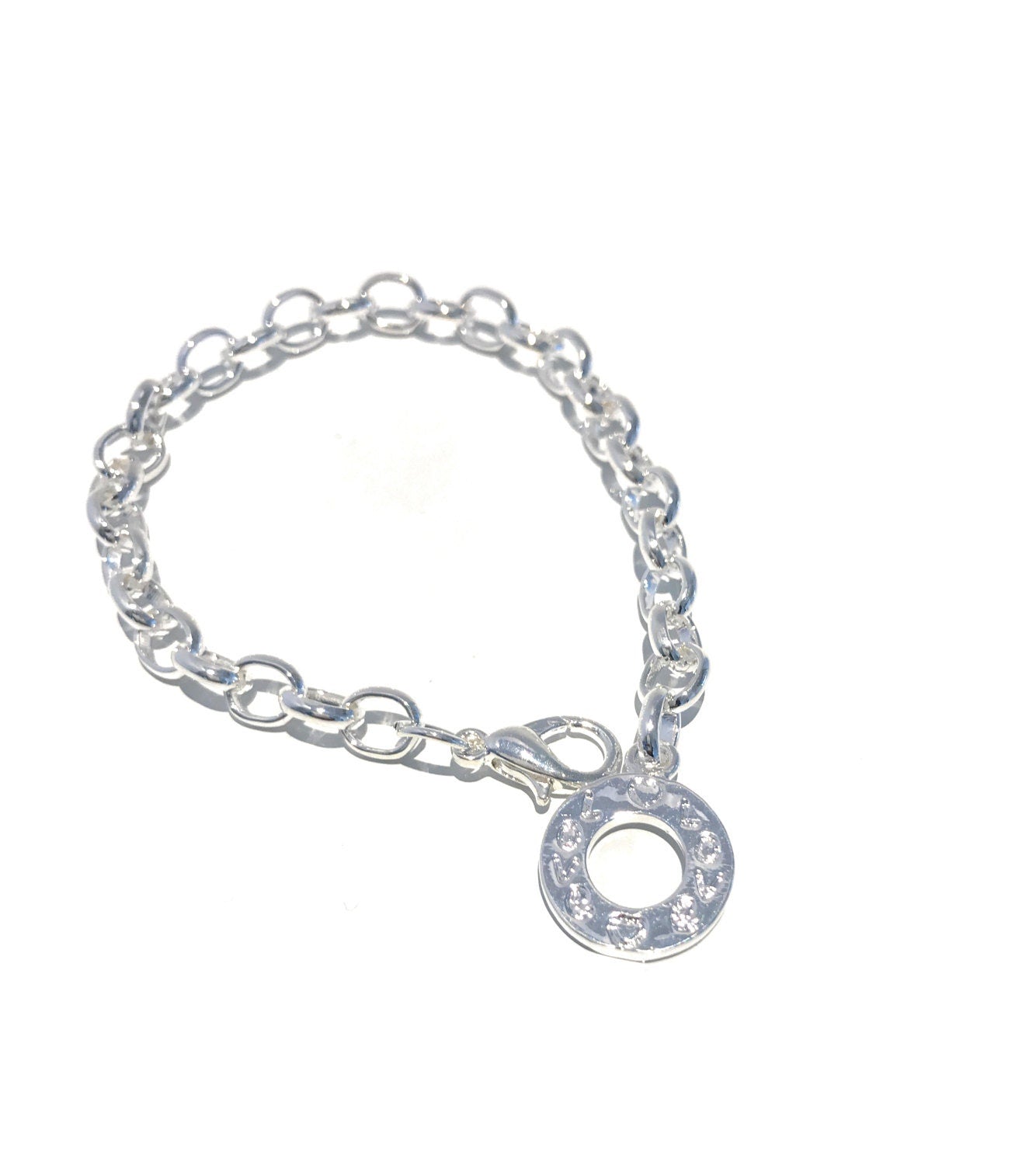 Silver Plated Clip On Charms Bracelets Link Cable Chain with Message "Love" Carved