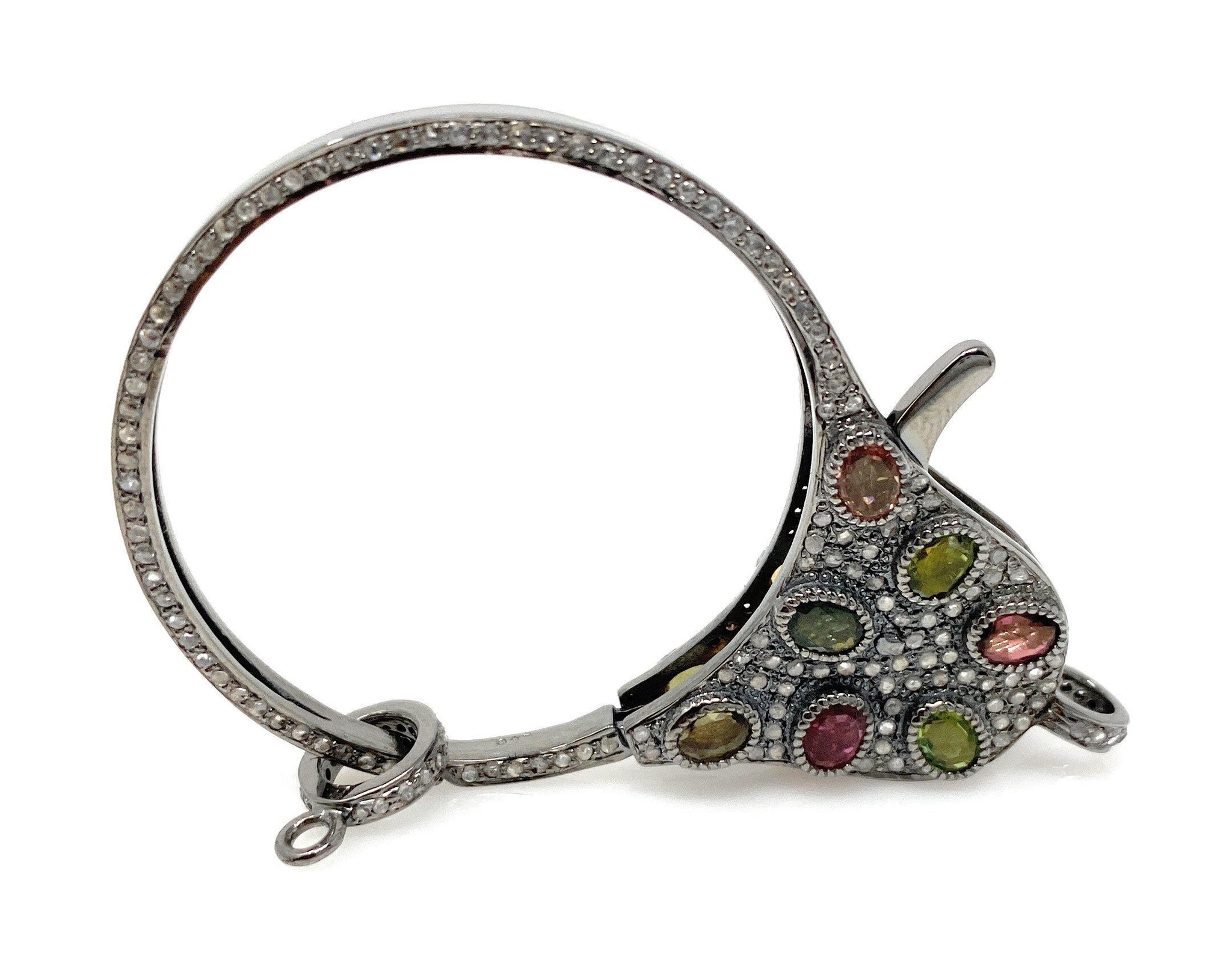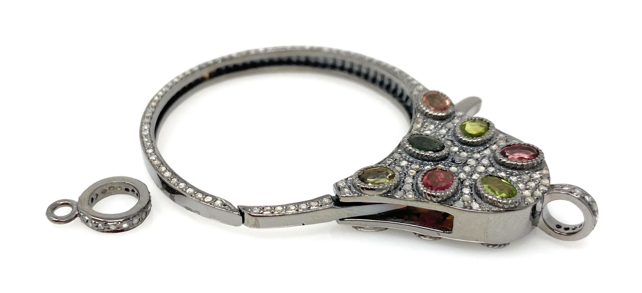 This Beautiful Handmade Large Size Lobster Clasp is made in Black Rhodium Sterling Silver using Genuine Diamonds and Natural Tourmaline Cut Stones in Pave Setting and gives any necklace a unique and classy look .