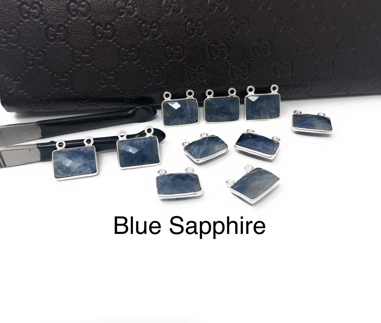 10 Pcs/ 12 Pcs Natural Sapphire Gemstone Connectors, Bulk Jewelry Supplies, Sterling Silver Jewelry Findings, 12x13mm - 14x15mm