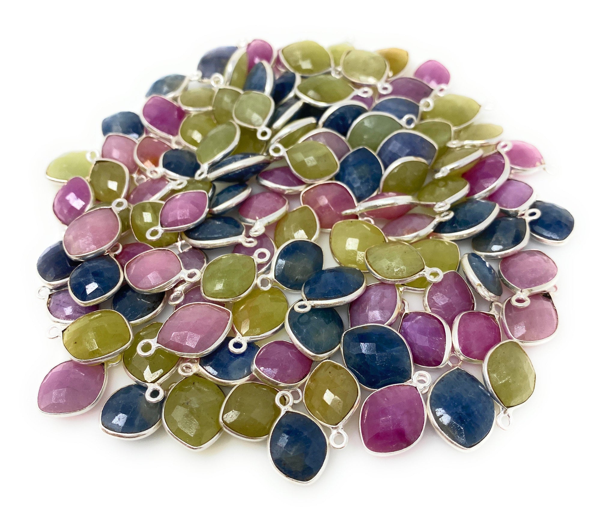 These Beautiful 925 Sterling Silver Natural Genuine Untreated Faceted Sapphire Briolette Charms are hand cut and are bezel set in 925 Sterling Silver.
