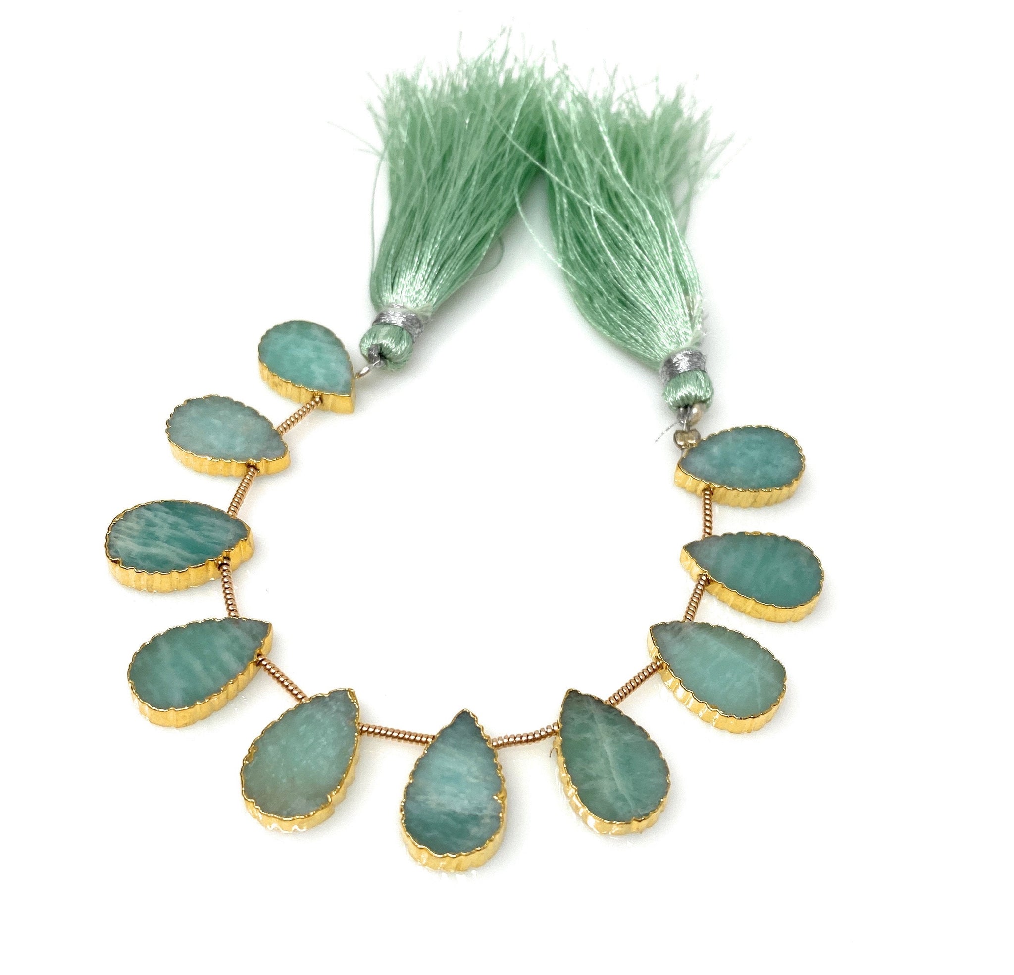 10 Pcs Amazonite Electroplated Slice Beads, Peruvian Amazonite Gemstone Wholesale Beads 14x9mm - 15x10mm
