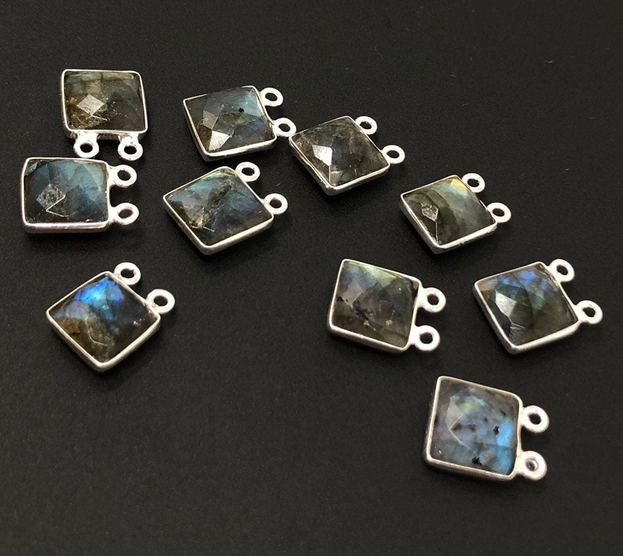 10 Pcs Sterling Silver Labradorite Gemstone Briolette Connectors Jewelry Findings for Jewelry Making at Wholesale Price.