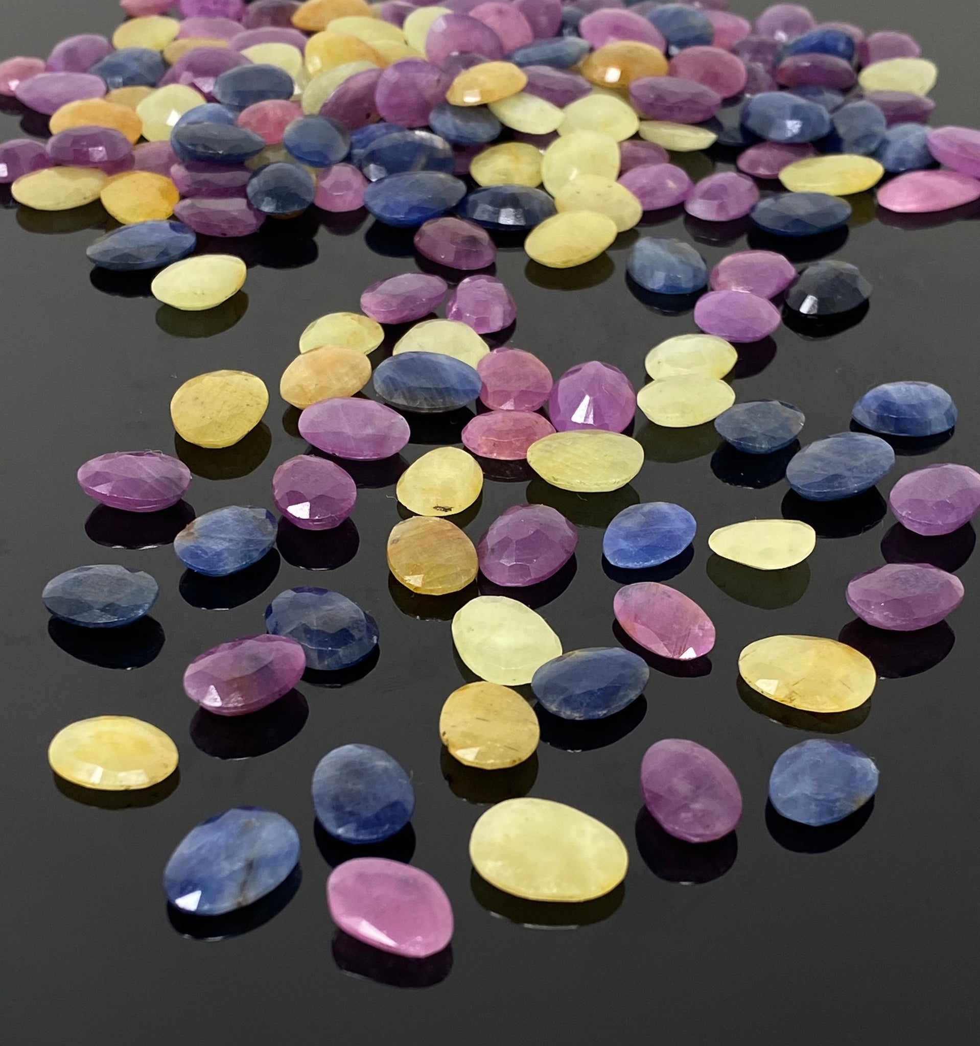 10 Pcs Natural Multi Sapphire Rose Cut Cabochons, Loose Gemstones, Sapphire Rose Cuts, Ring Stones, 8x6mm - 10x8mm