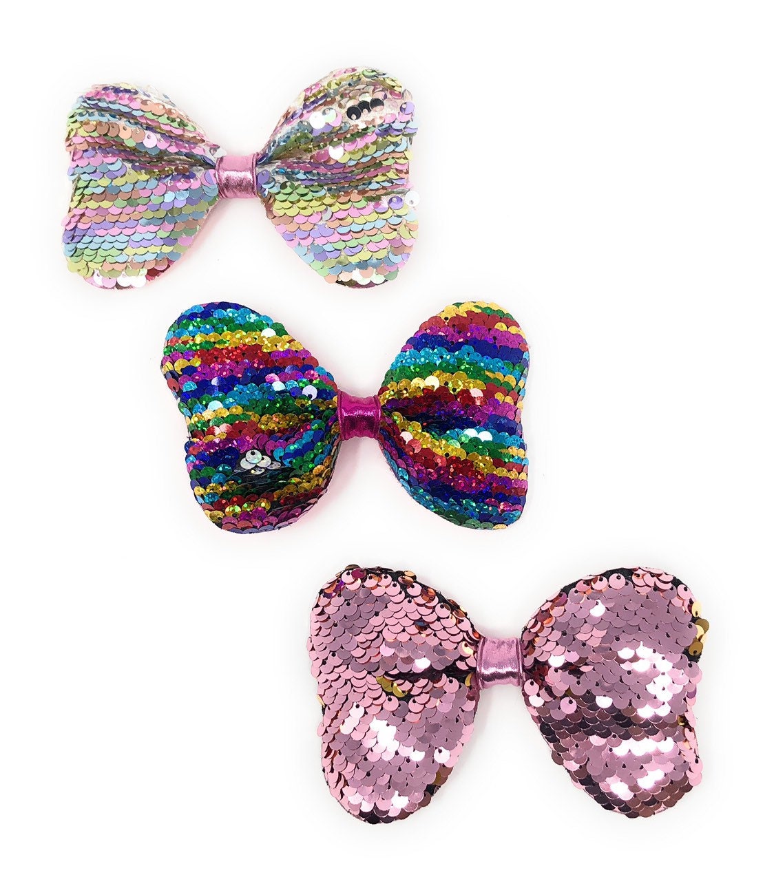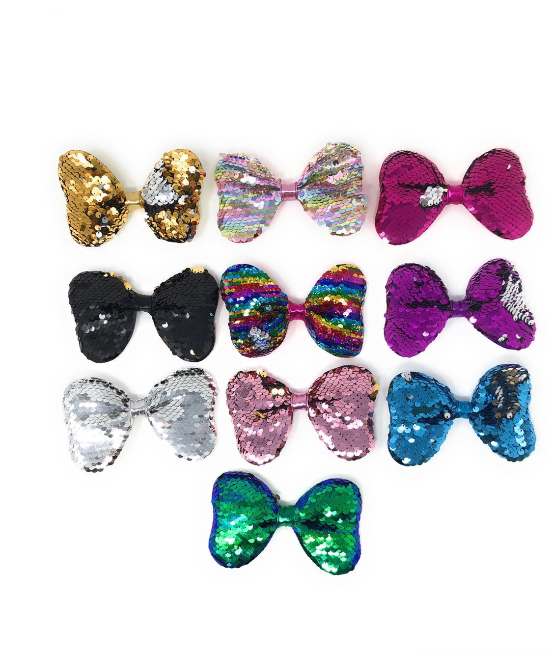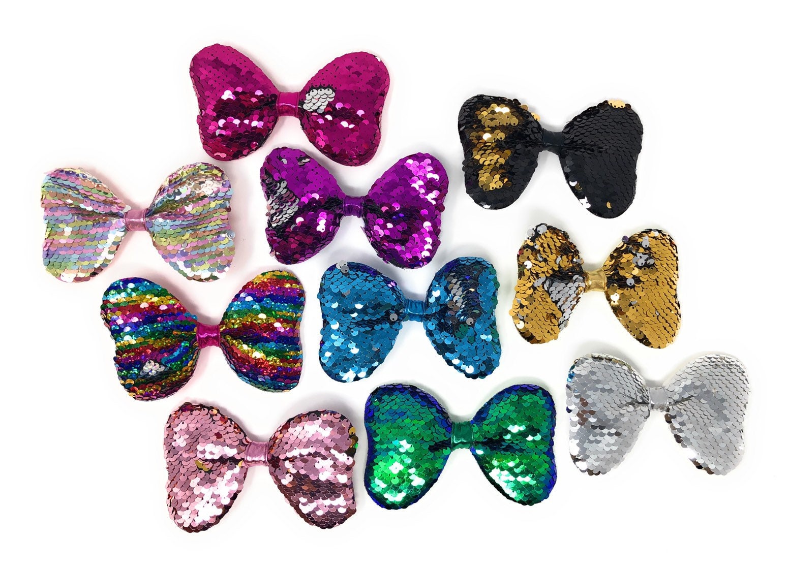 10 Pieces of Colorful Rainbow Sequins Hair Bow Kids Girl Barrette Hair Accessories at Wholesale Price.