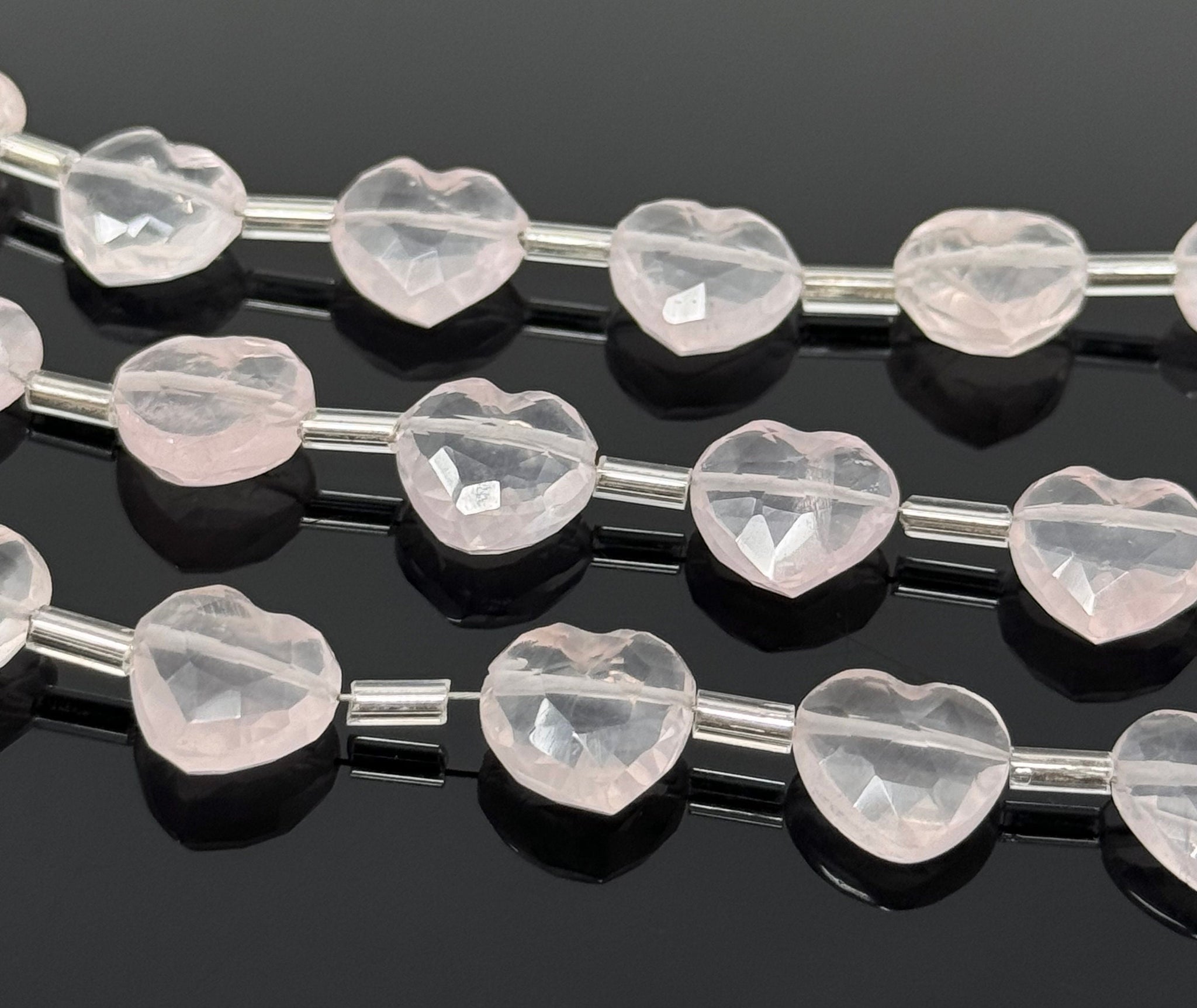 Natural Rose Quartz Faceted Heart Shape Gemstone Beads for DIY Jewelry Making at Wholesale Price.