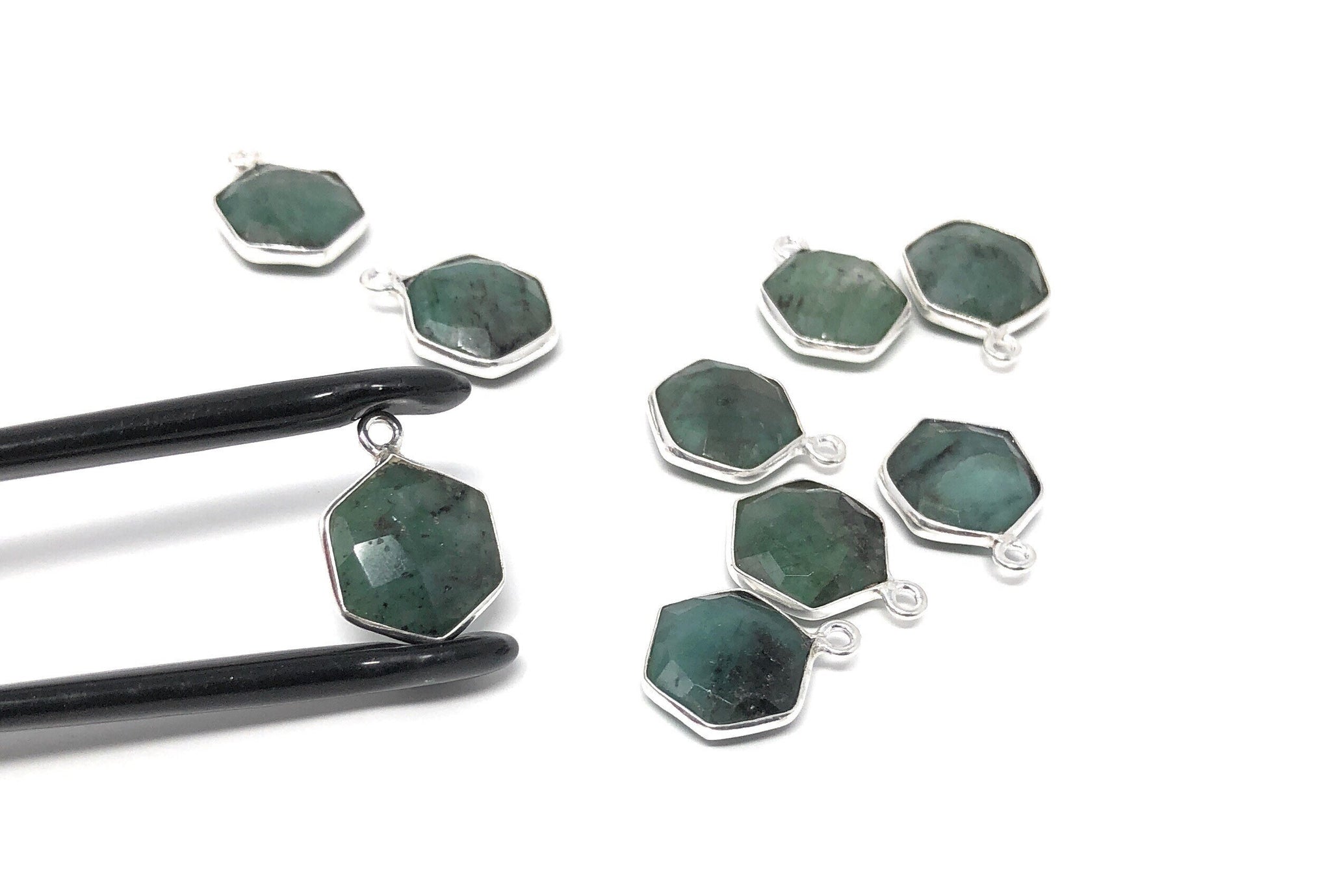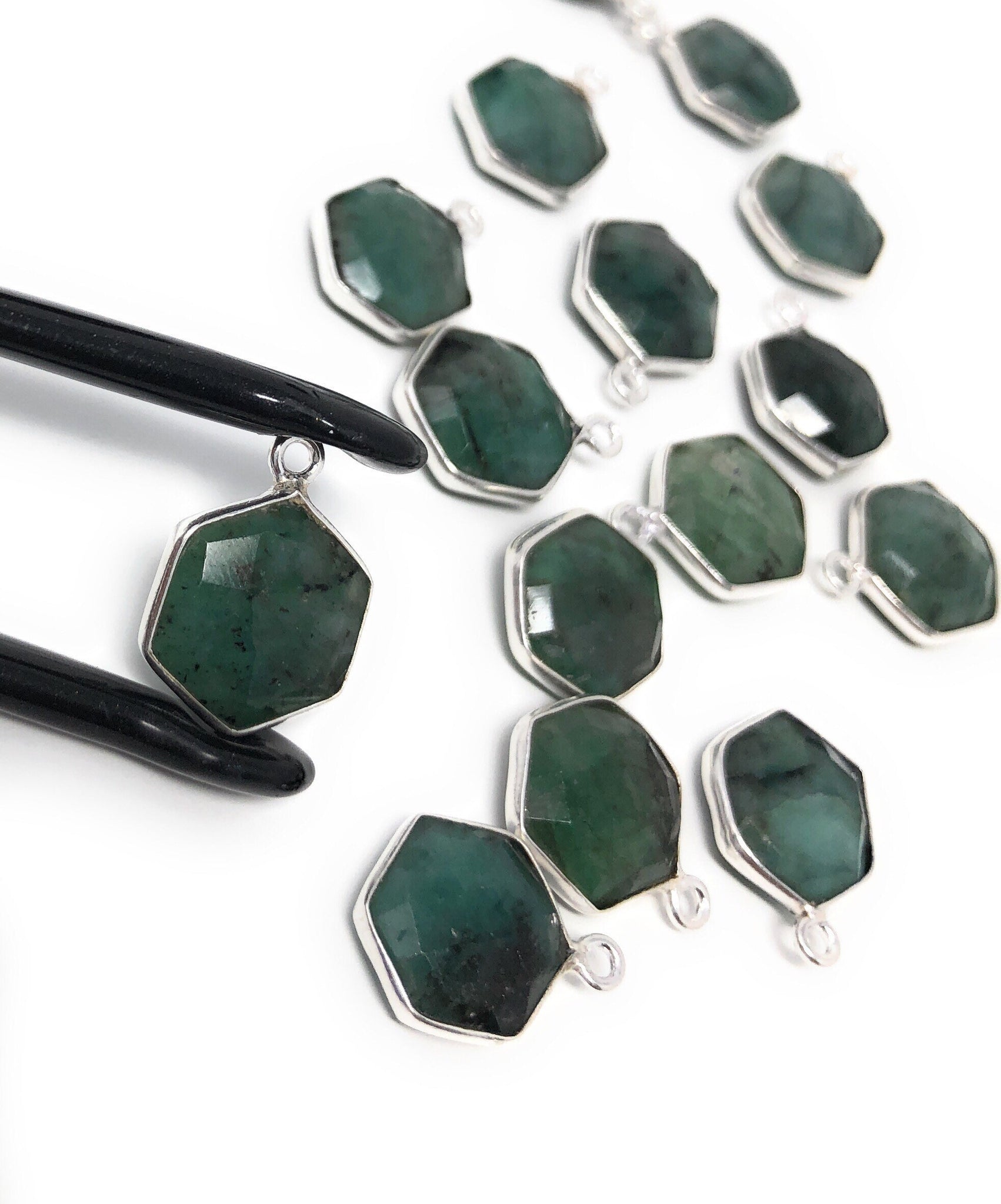 These beautiful Sterling Silver Double Sided Bezel Set Faceted Sakota Emerald Charms are handmade and can be used used for making any creative Jewelry Piece.