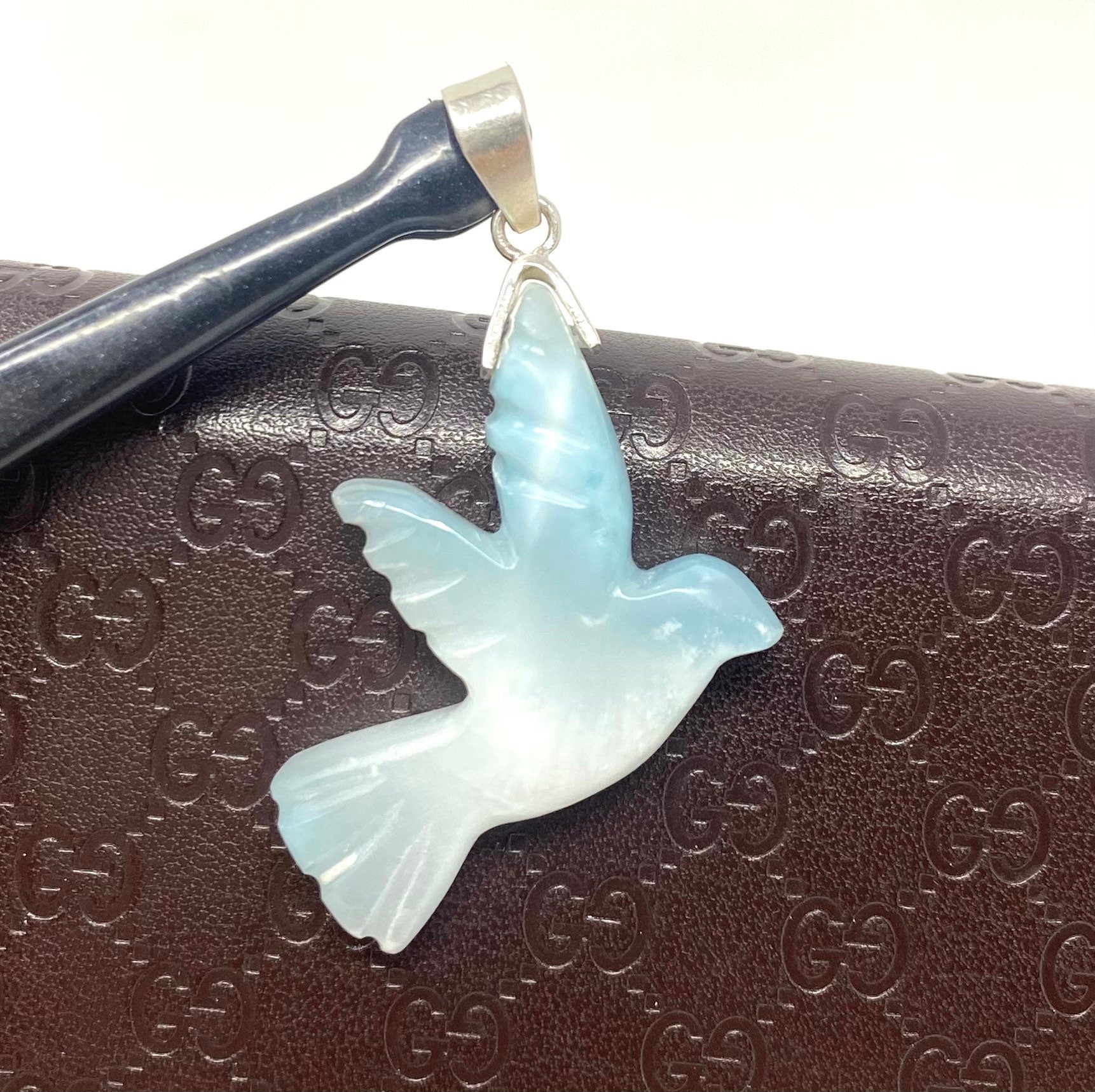 10g Rare Large Larimar Bird Pendant, Silver Bohemian Jewelry, Dominican Republic Larimar Pendant