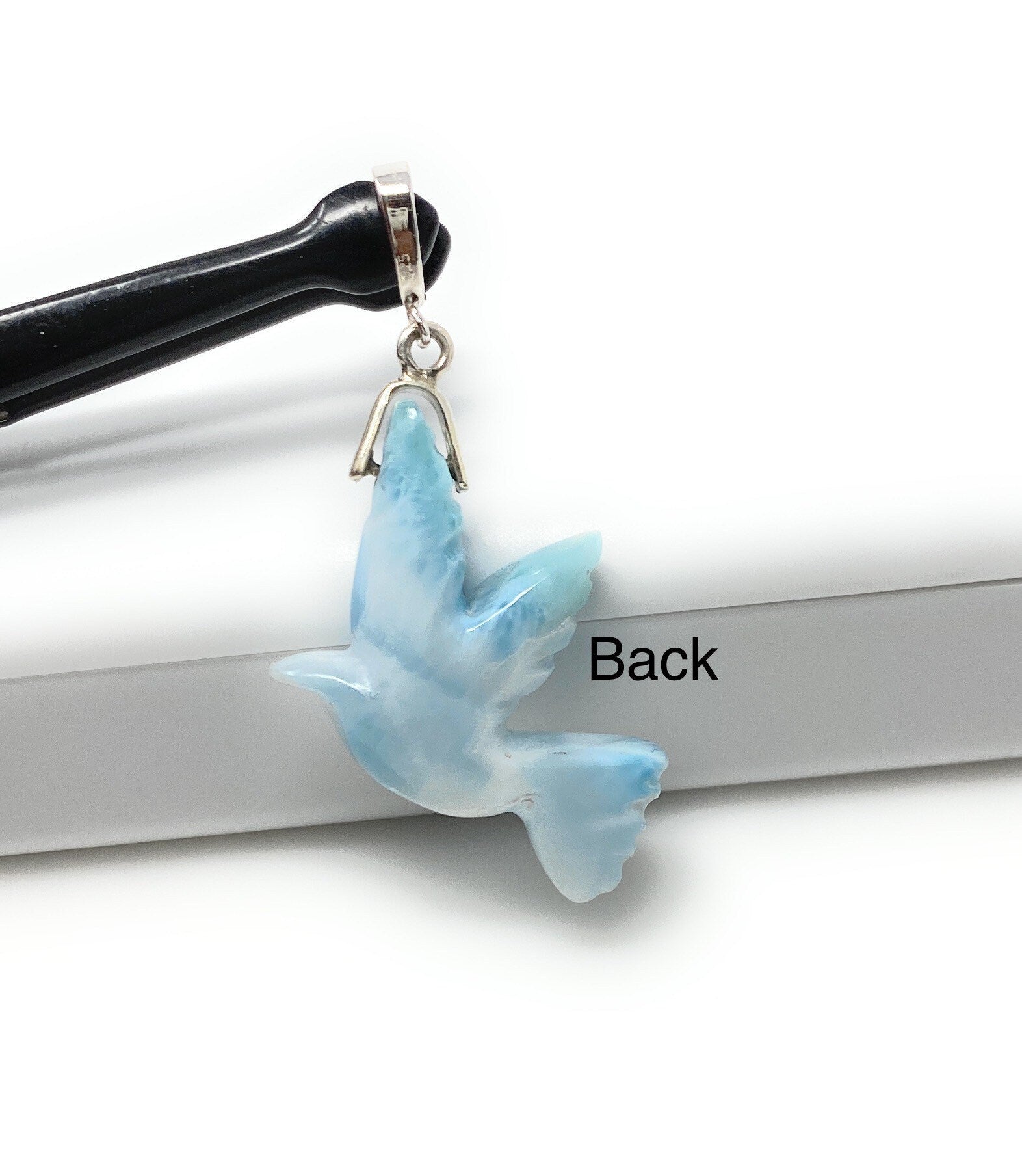 12g Rare Large Larimar Bird Pave Diamond Pendant, Silver Bohemian Jewelry, Dominican Republic Larimar Bird Pendant
