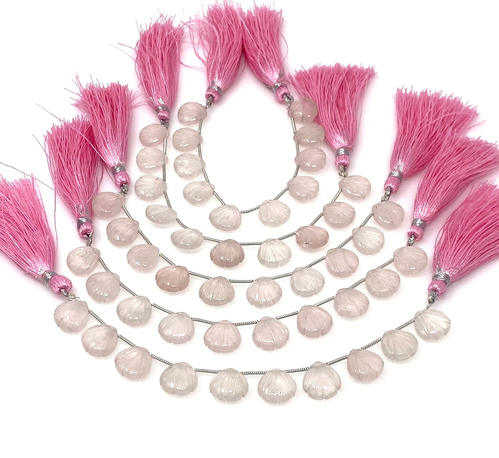 12mm Rose Quartz Carved Gemstone Beads, Rose Quartz Shell Shape Carved Briolette Beads for Jewelry Making, 10 Pcs