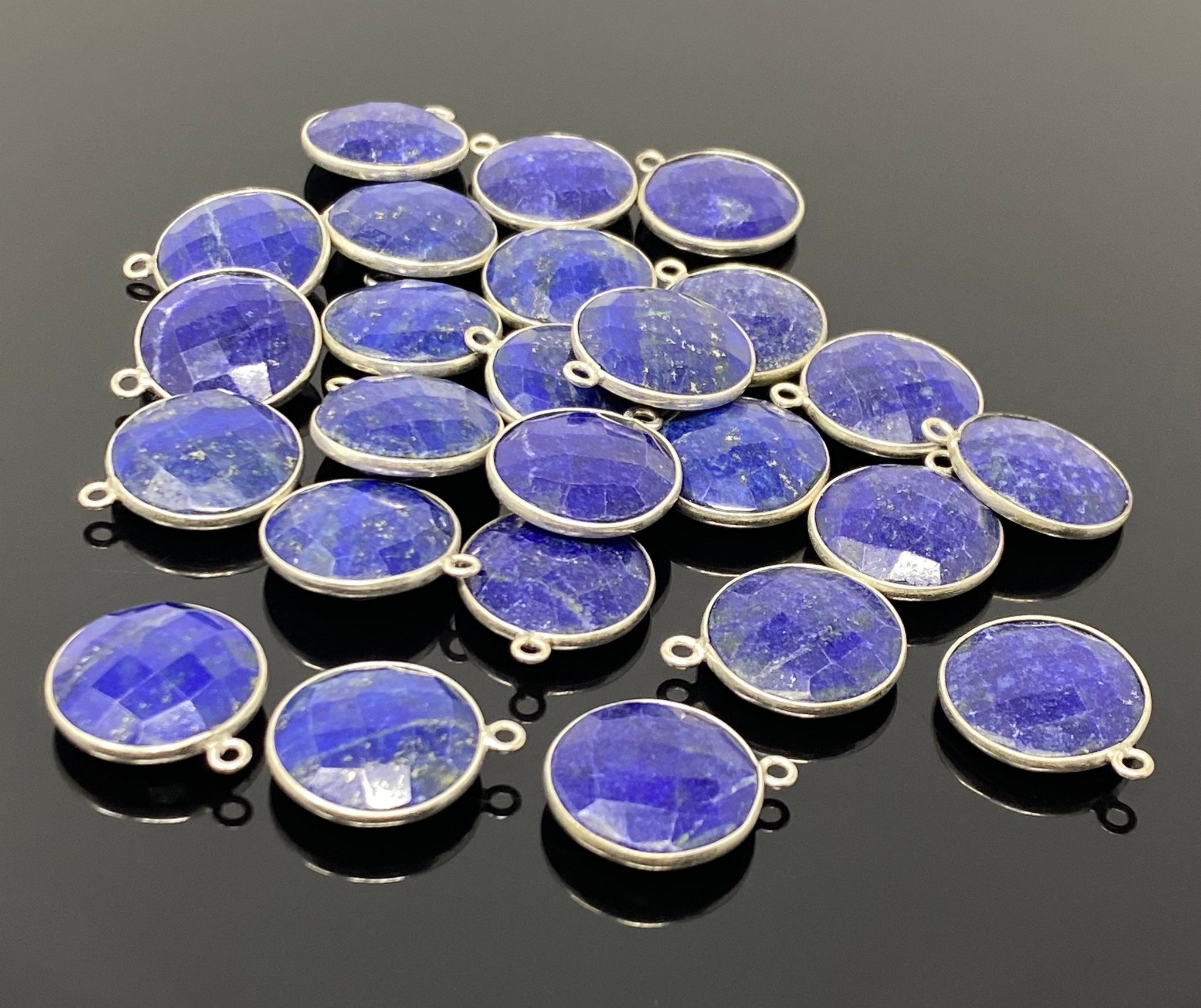 Silver Plated Gemstone Lapis Lazuli Bezel Charms Jewelry Supplies for Jewelry Making.