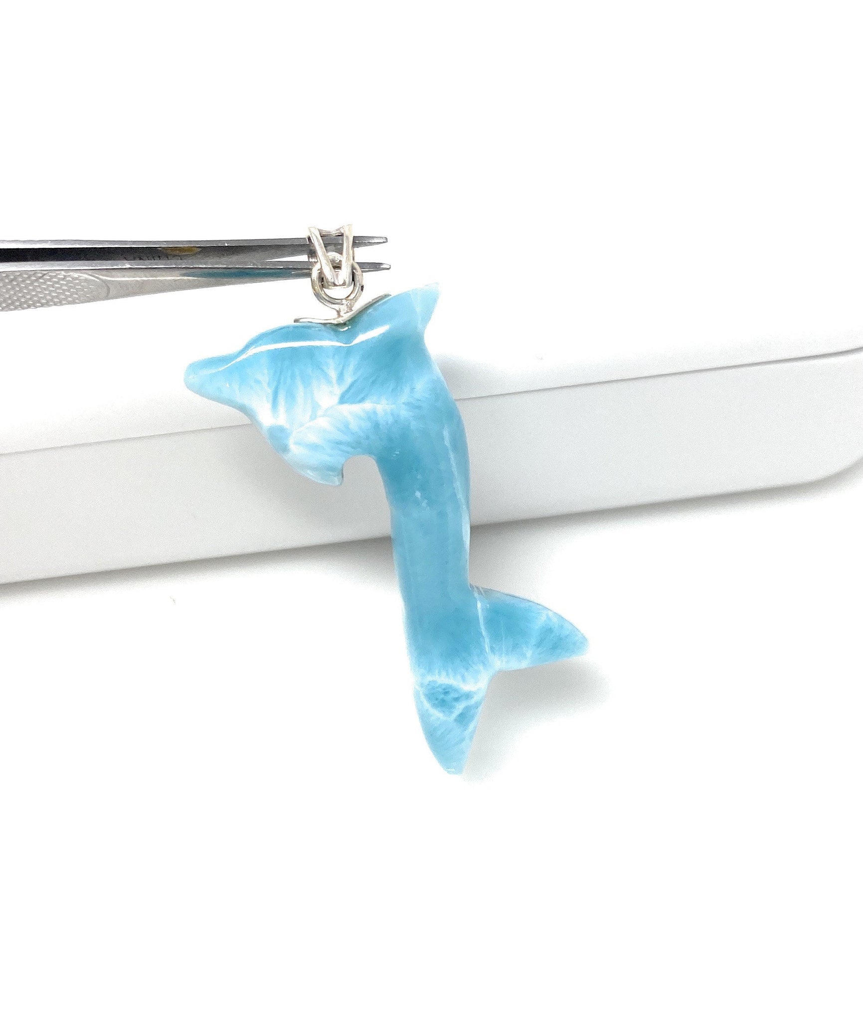 14g Larimar Dolphin Pendant, Larimar Pendant, Bohemian Jewelry, Dominican Republic Larimar Pendant