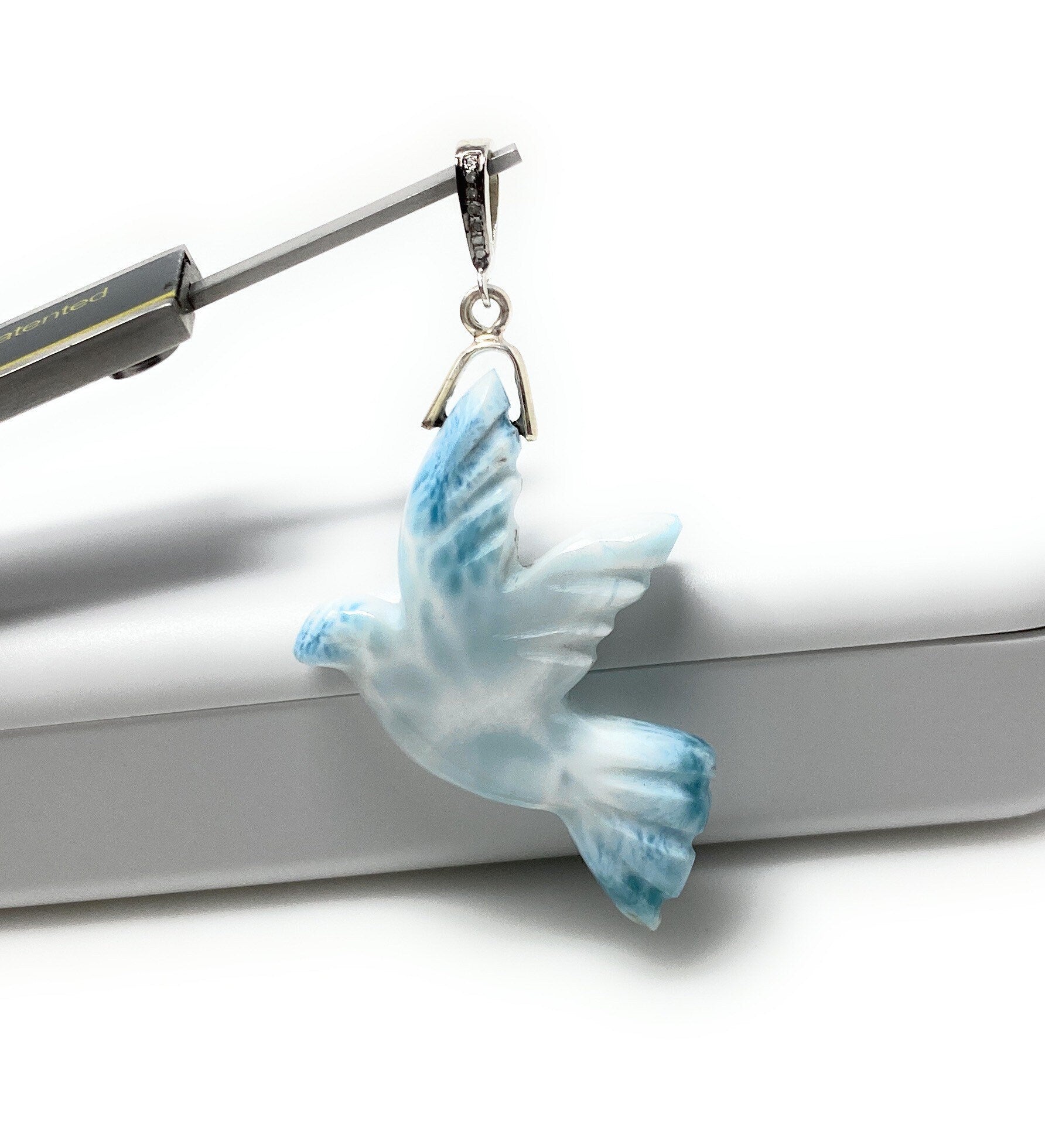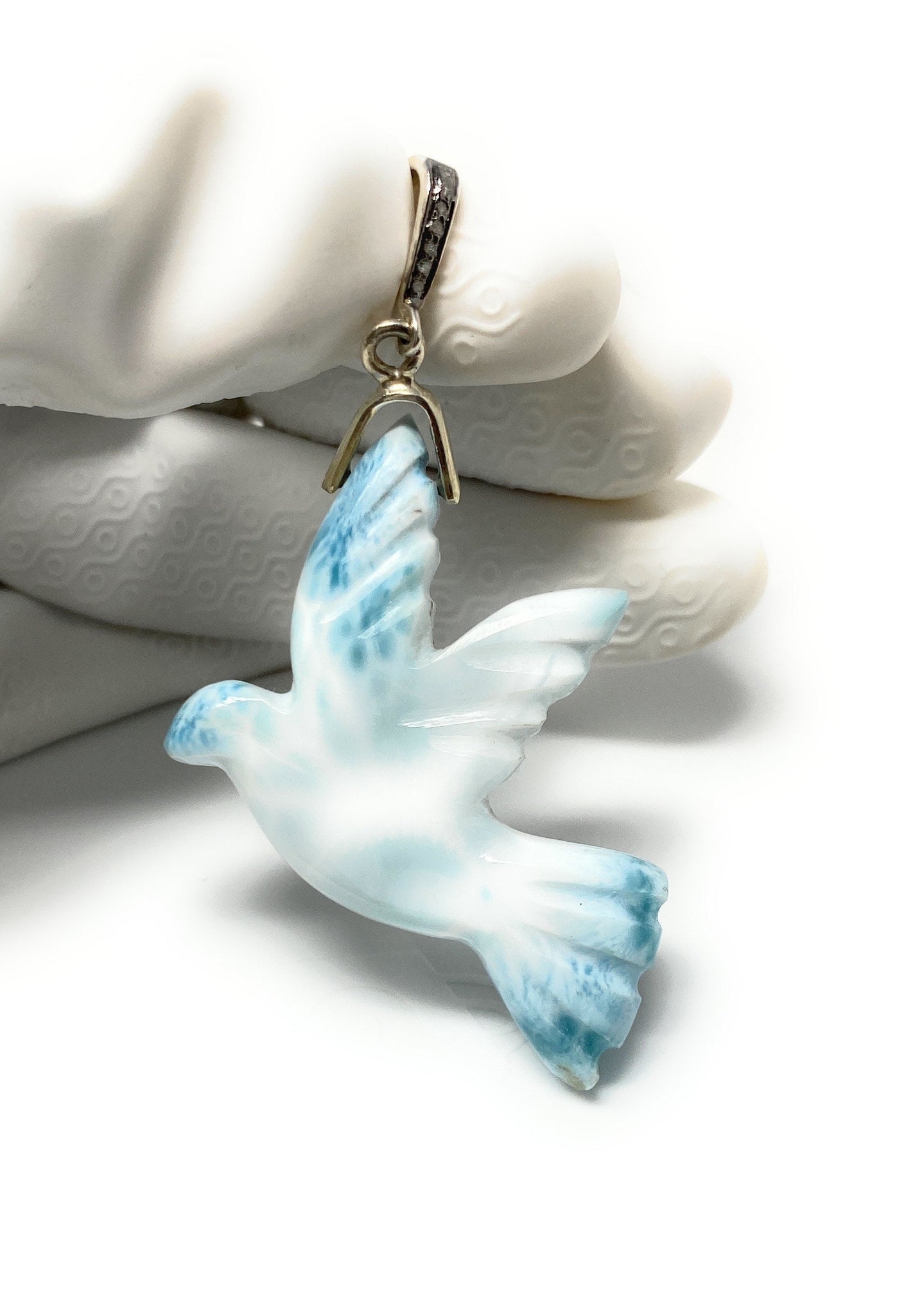 Pave Diamond Larimar Gemstone Sterling Silver Bird Pendant Jewelry at Wholesale Price.