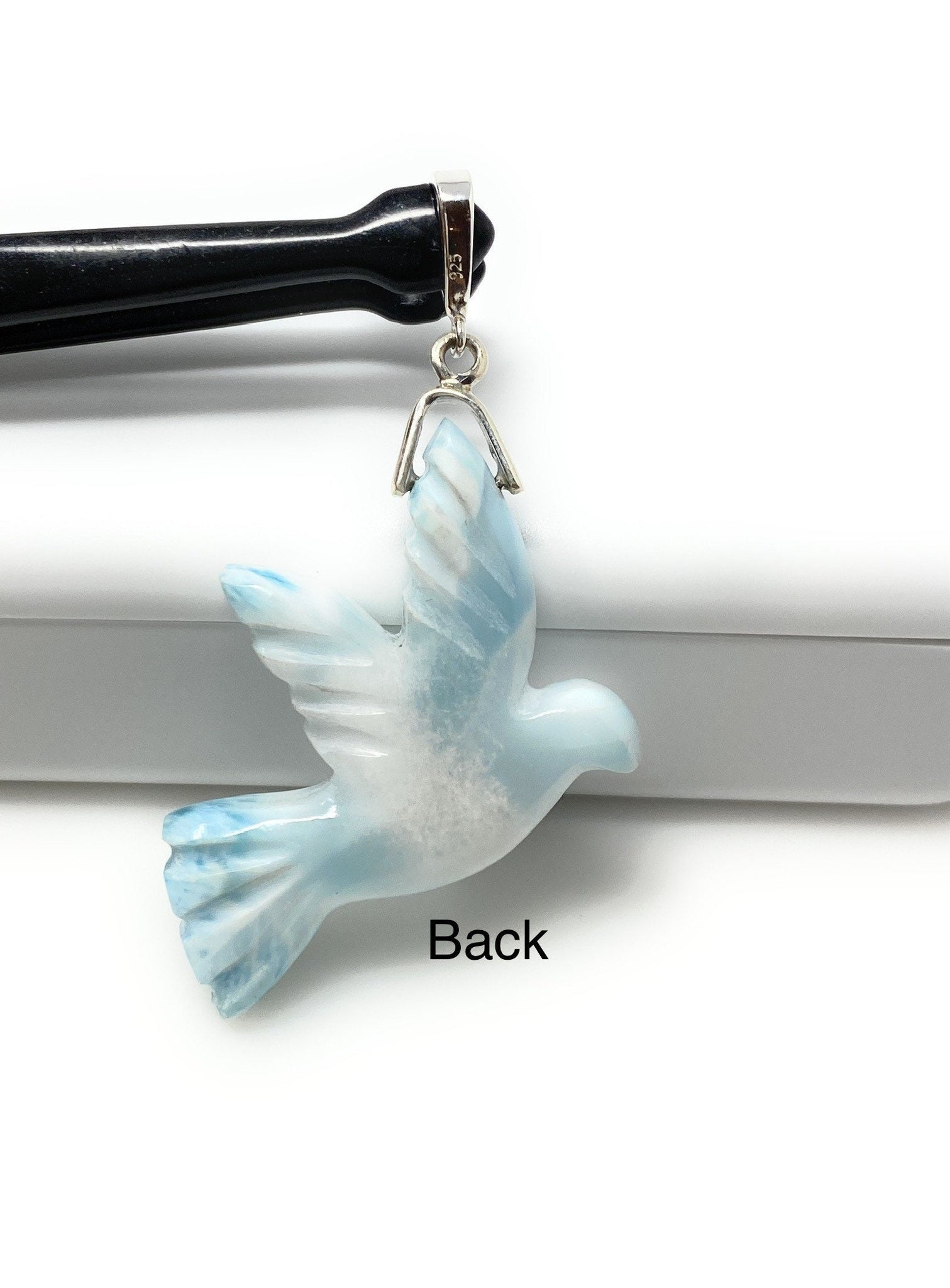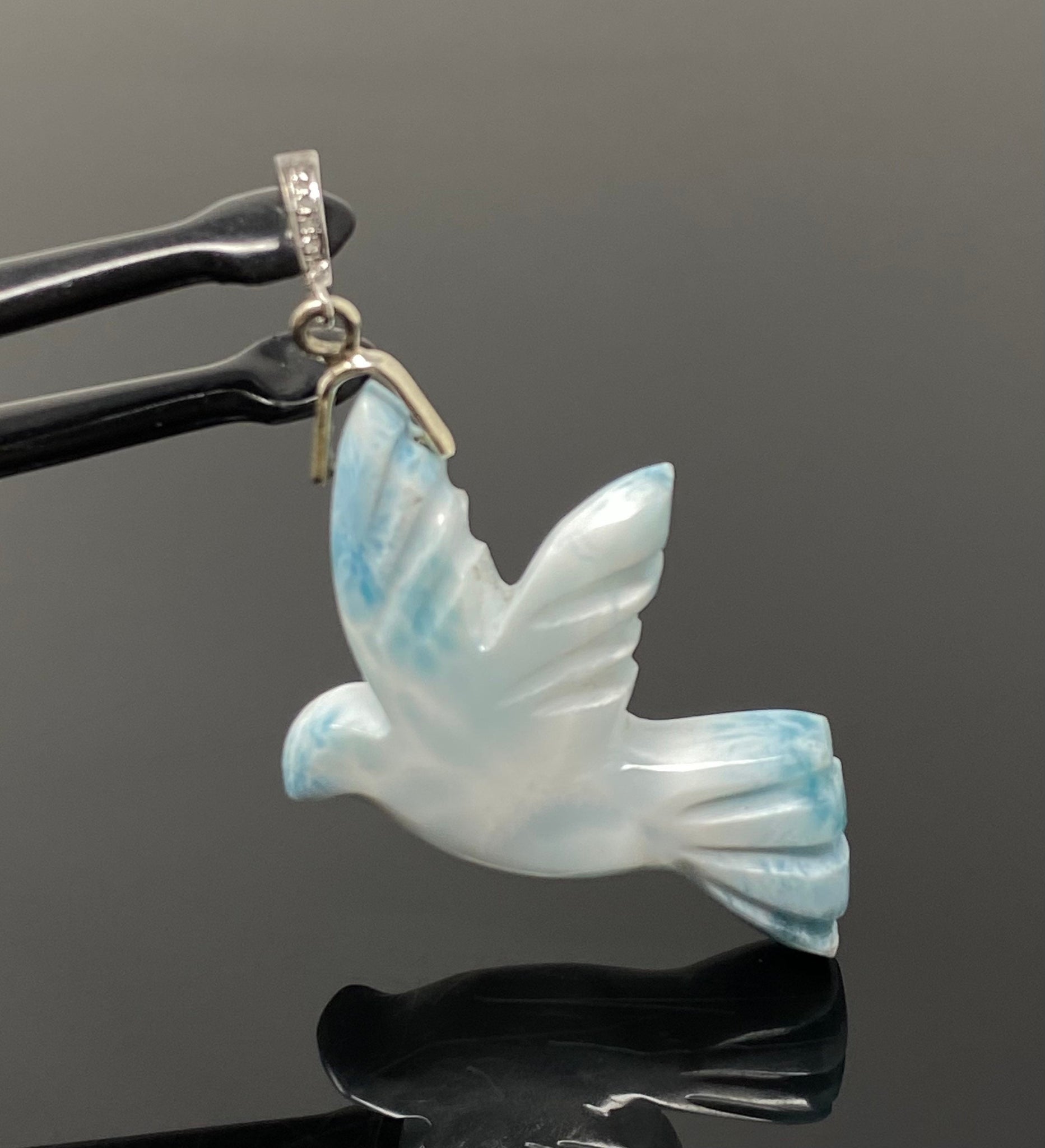 14g Rare Large Larimar Bird Pave Diamond Pendant, Silver Bohemian Jewelry, Dominican Republic Larimar Pendant, Larimar Bird Pendant