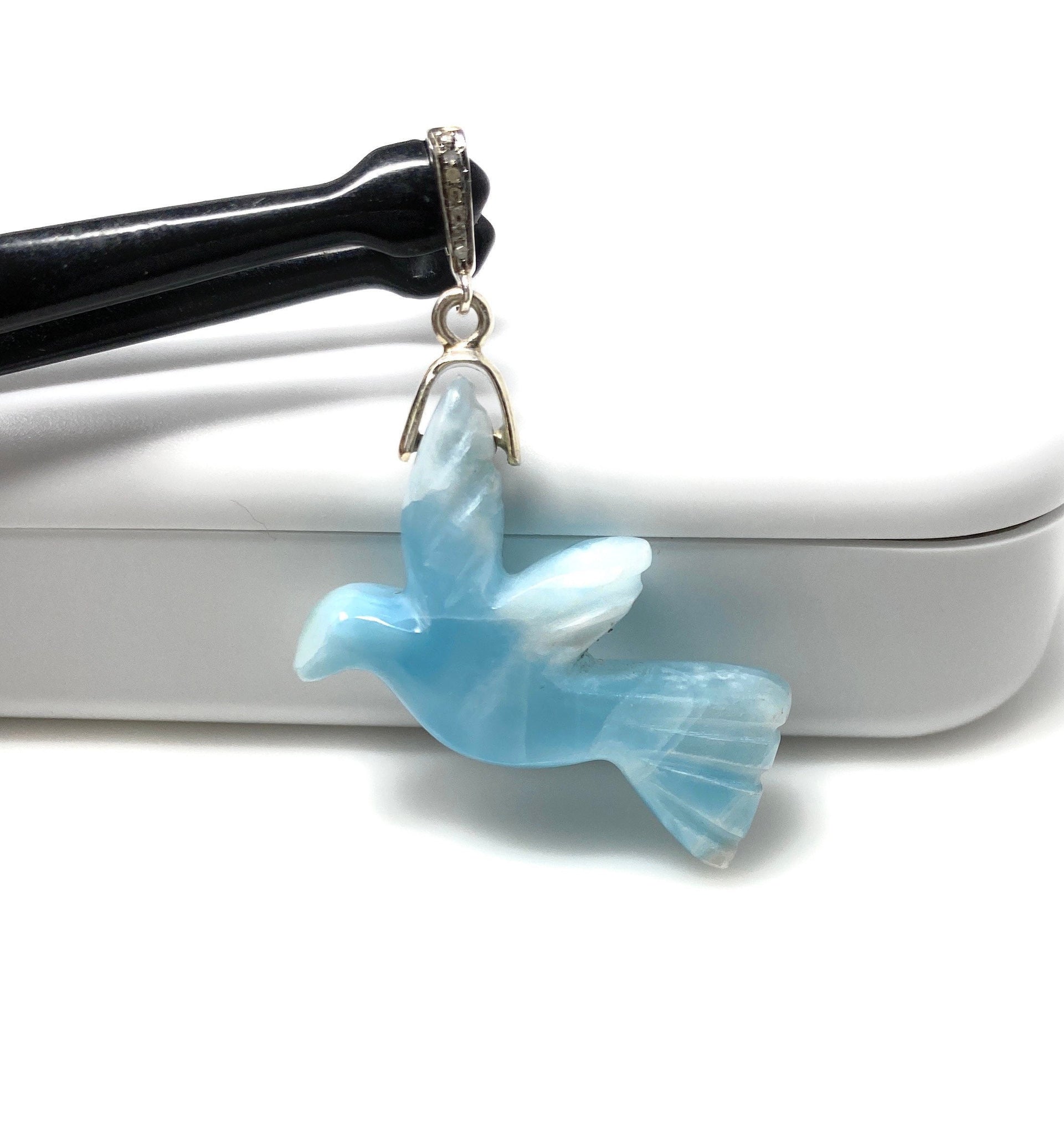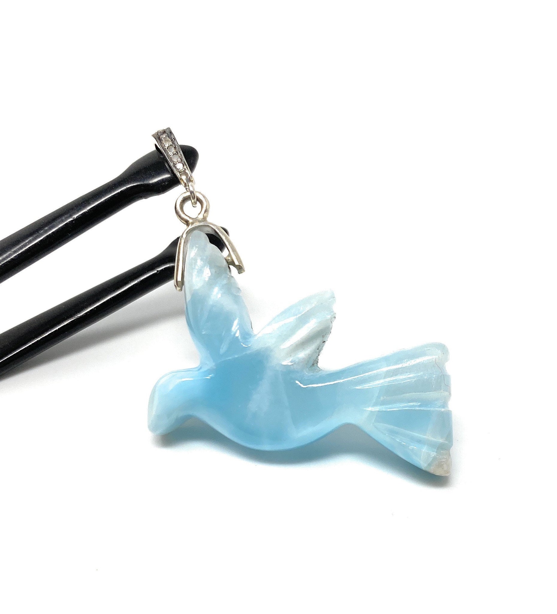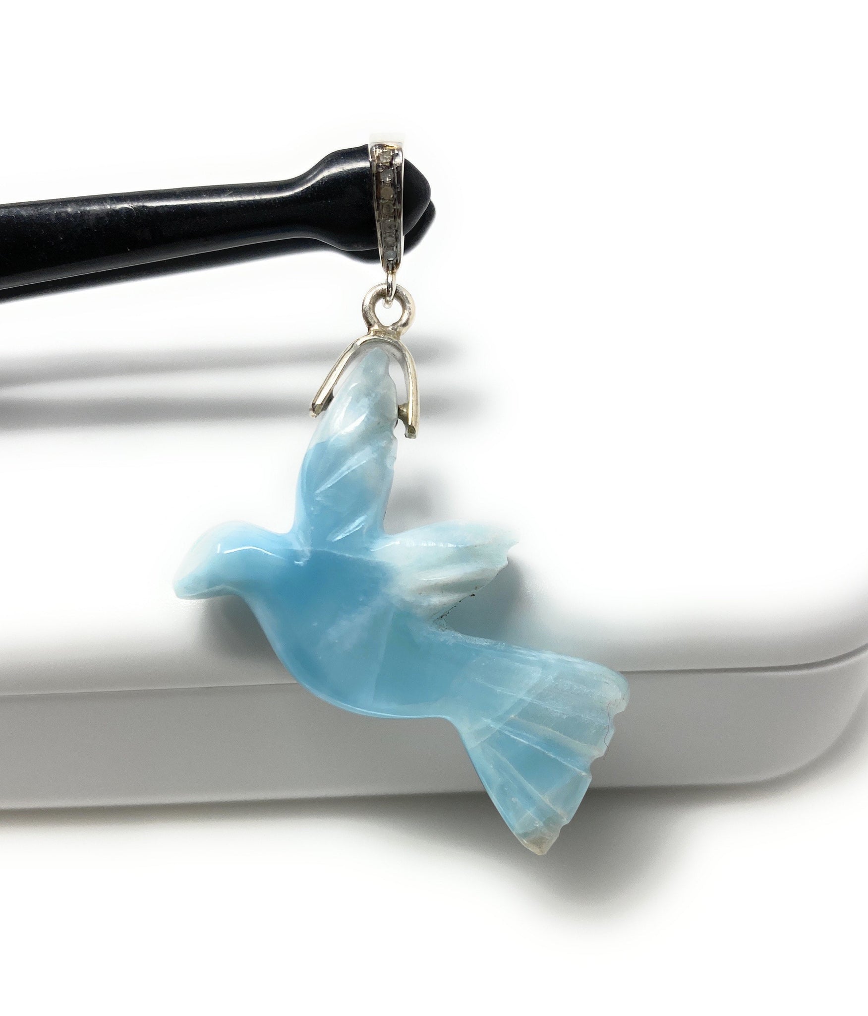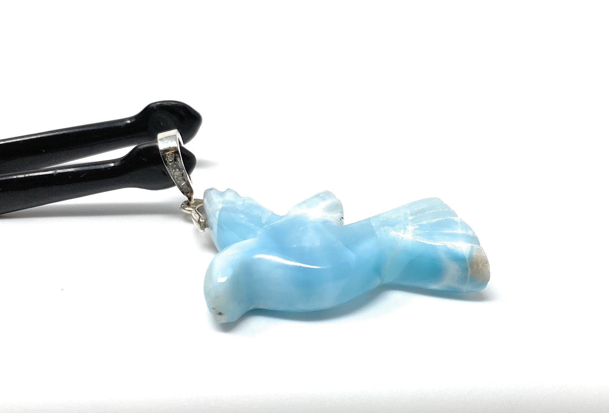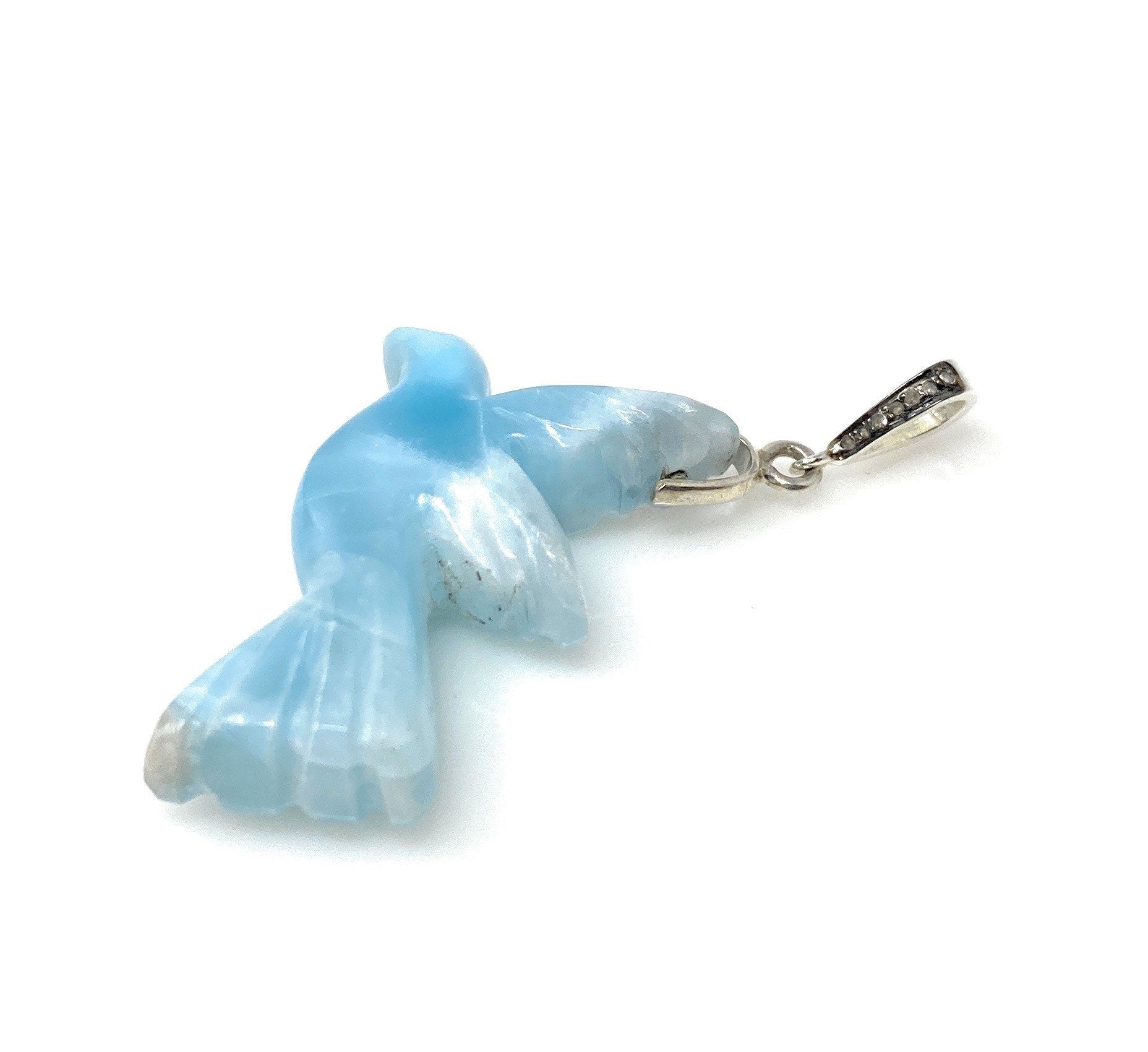 14g Rare Large Larimar Bird Pave Diamond Pendant, Silver Bohemian Jewelry, Dominican Republic Larimar Pendant, Larimar Bird Pendant
