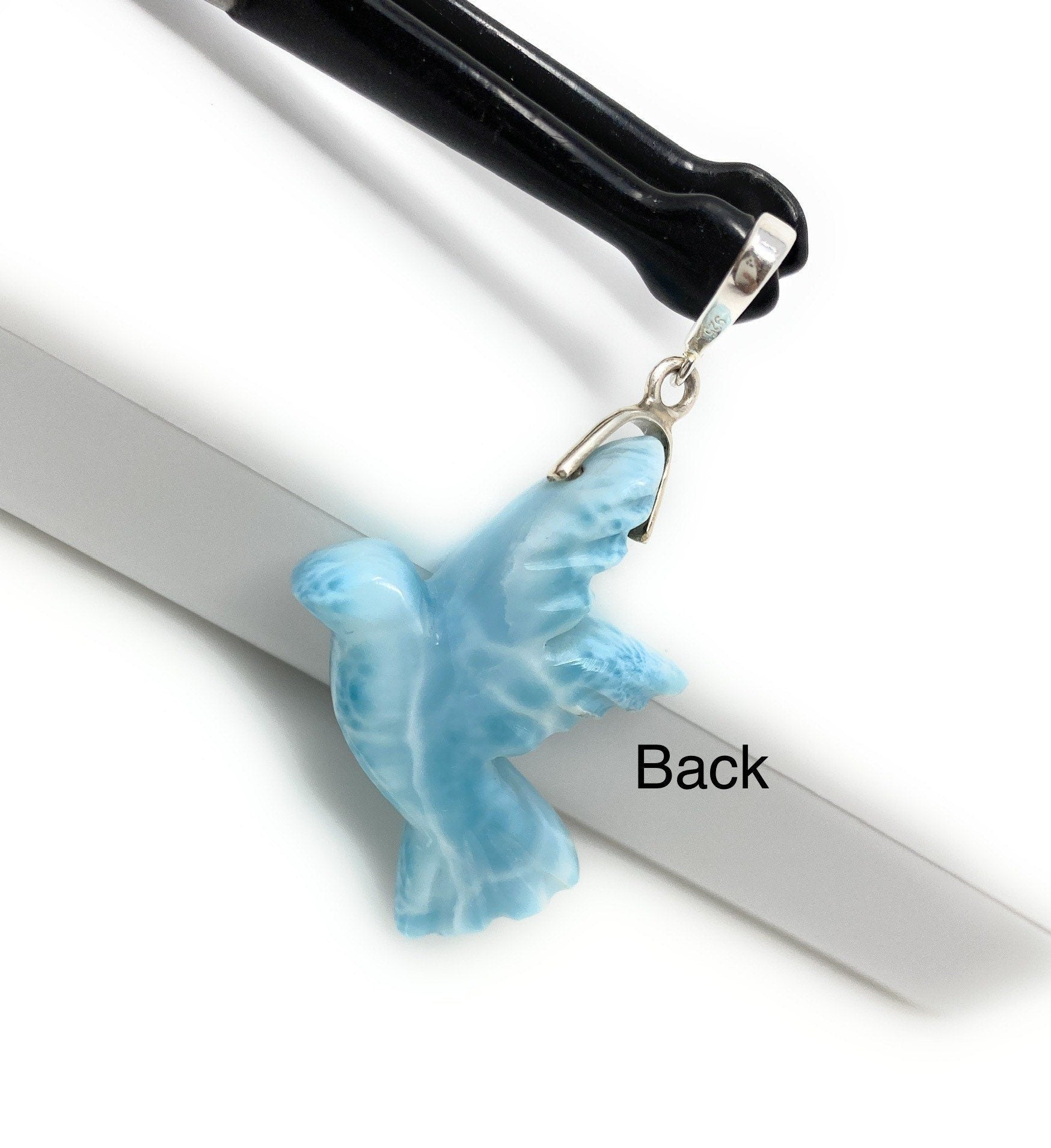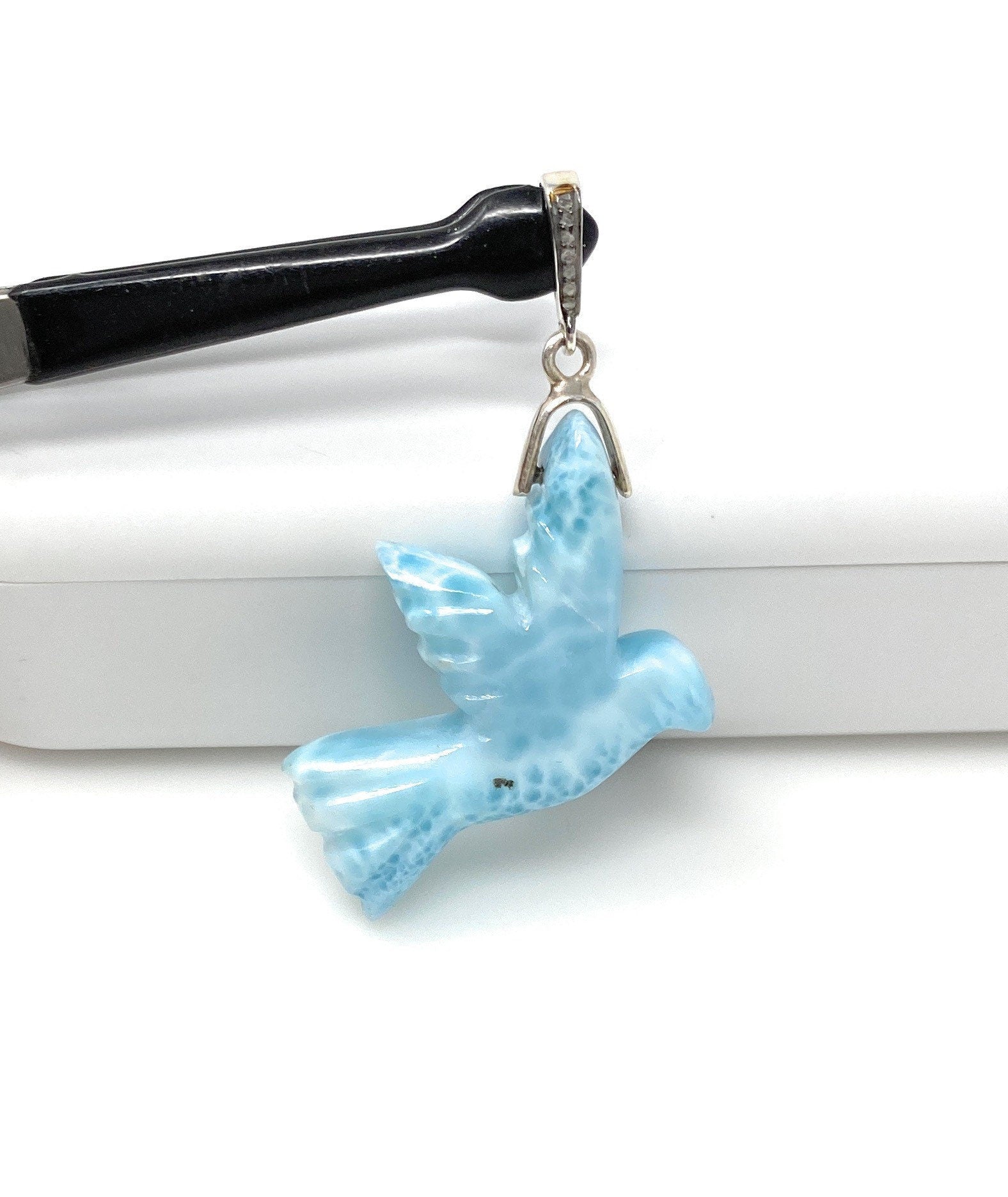 14g Rare Large Larimar Bird Pave Diamond Pendant, Silver Bohemian Jewelry, Dominican Republic Larimar Pendant, Larimar Bird Pendant