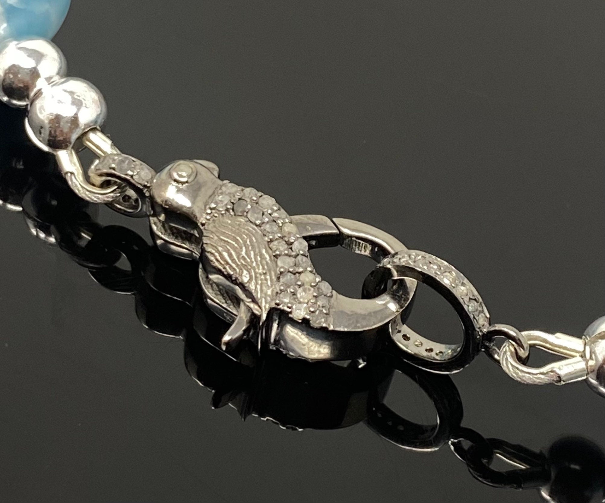 This beautiful Larimar Necklace is made using Genuine Natural Dominican Republic Rare Large Size Larimar Beads and Designer Genuine Bird Pave Diamond Clasp.