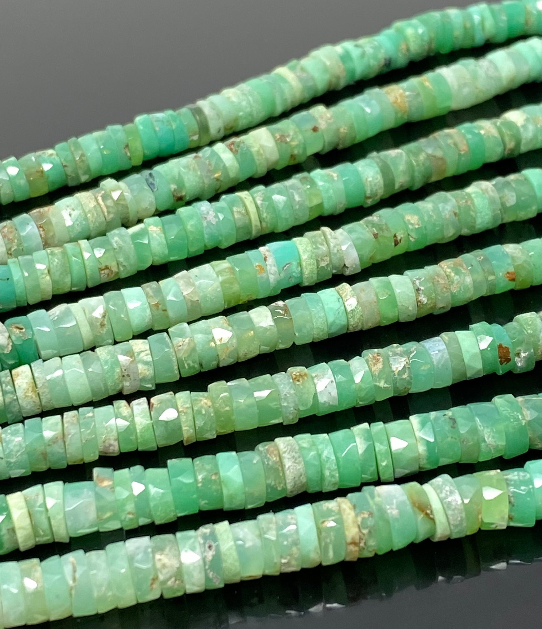 Natural Chrysoprase Faceted Gemstone Heishi Beads.