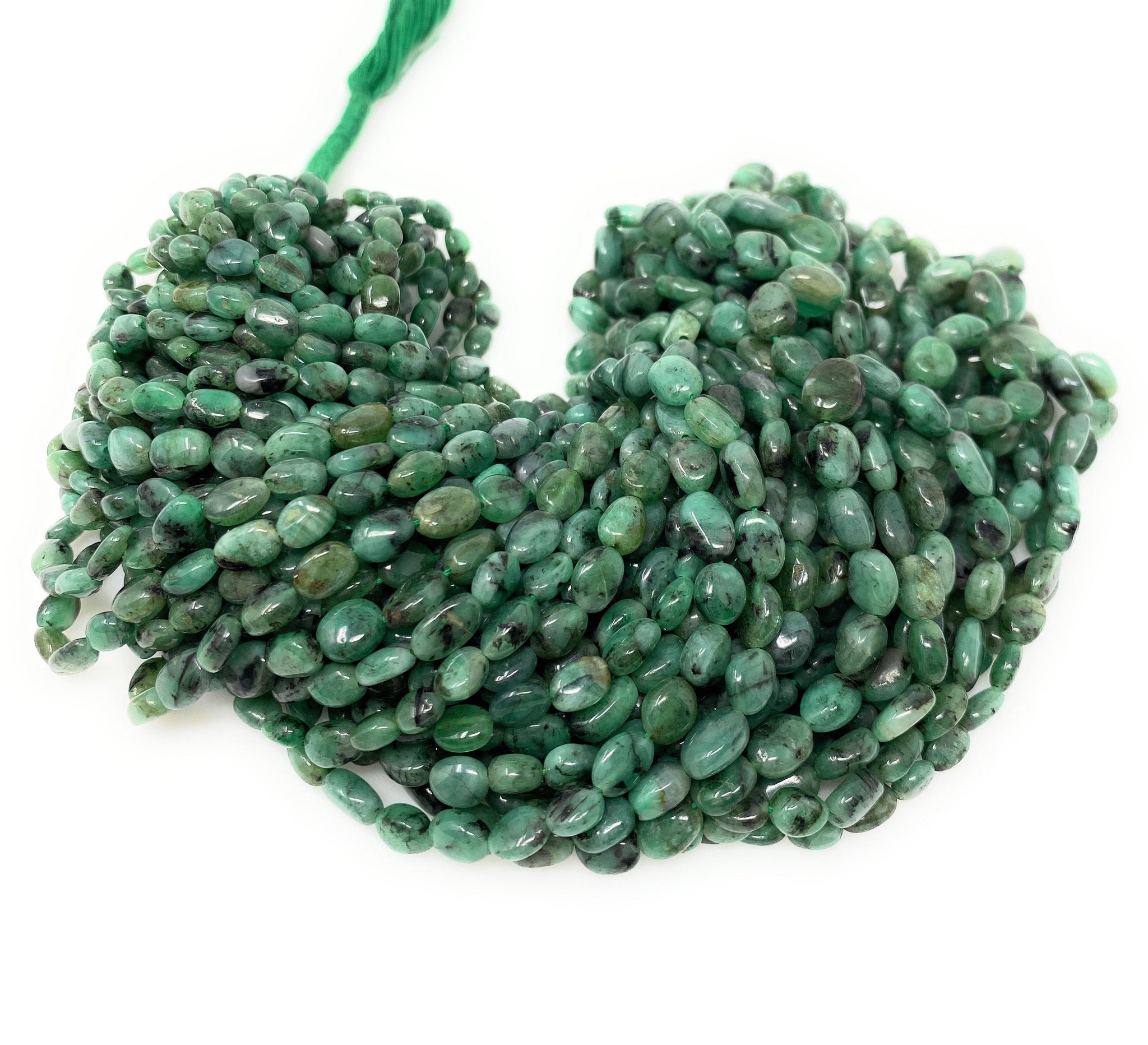 16" Natural Emerald Gemstone Beads, Smooth Emerald Oval Beads for Jewelry Making, May Birthstone Jewelry Supplies
