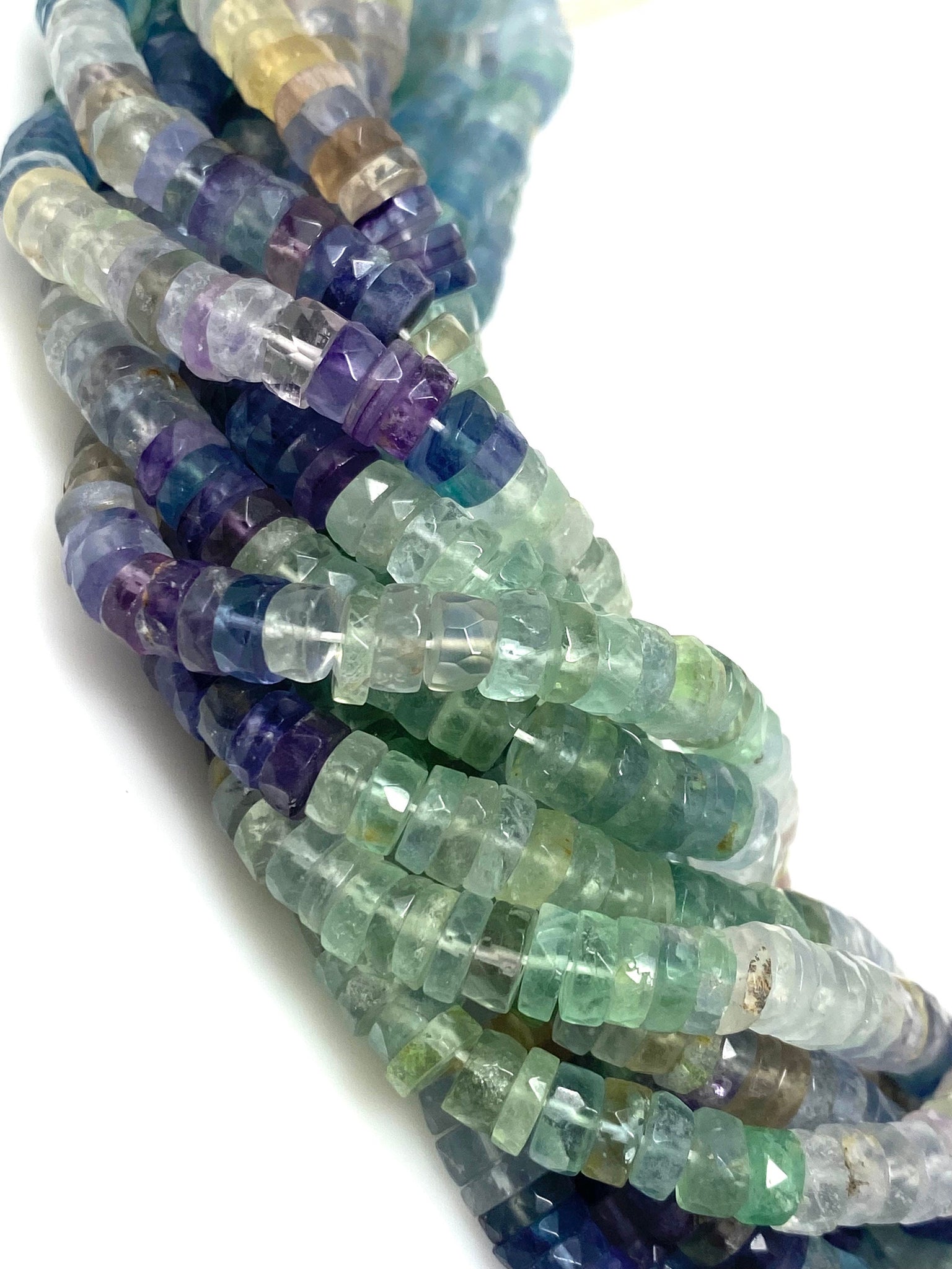 16” Natural Multi Fluorite Faceted Heishi Gemstone Beads, Fluorite Tyre Shape Disc Beads , Wholesale Bulk Beads, 6mm - 7mm