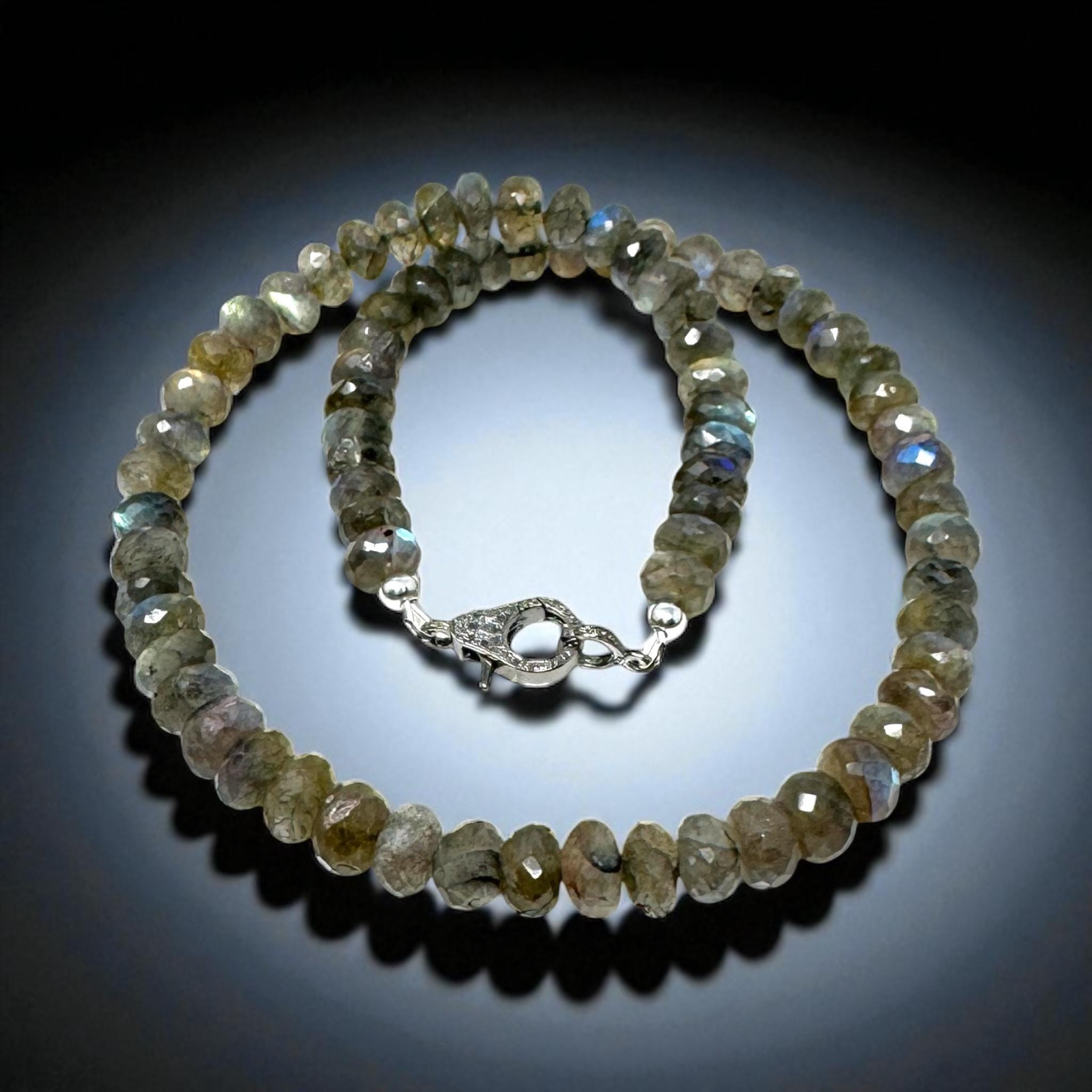 17.25” Natural Labradorite Necklace with Pave Diamond Clasp, Spiritual Healing Crystal Jewelry, Chakra Balancing Jewelry Gifts for Her