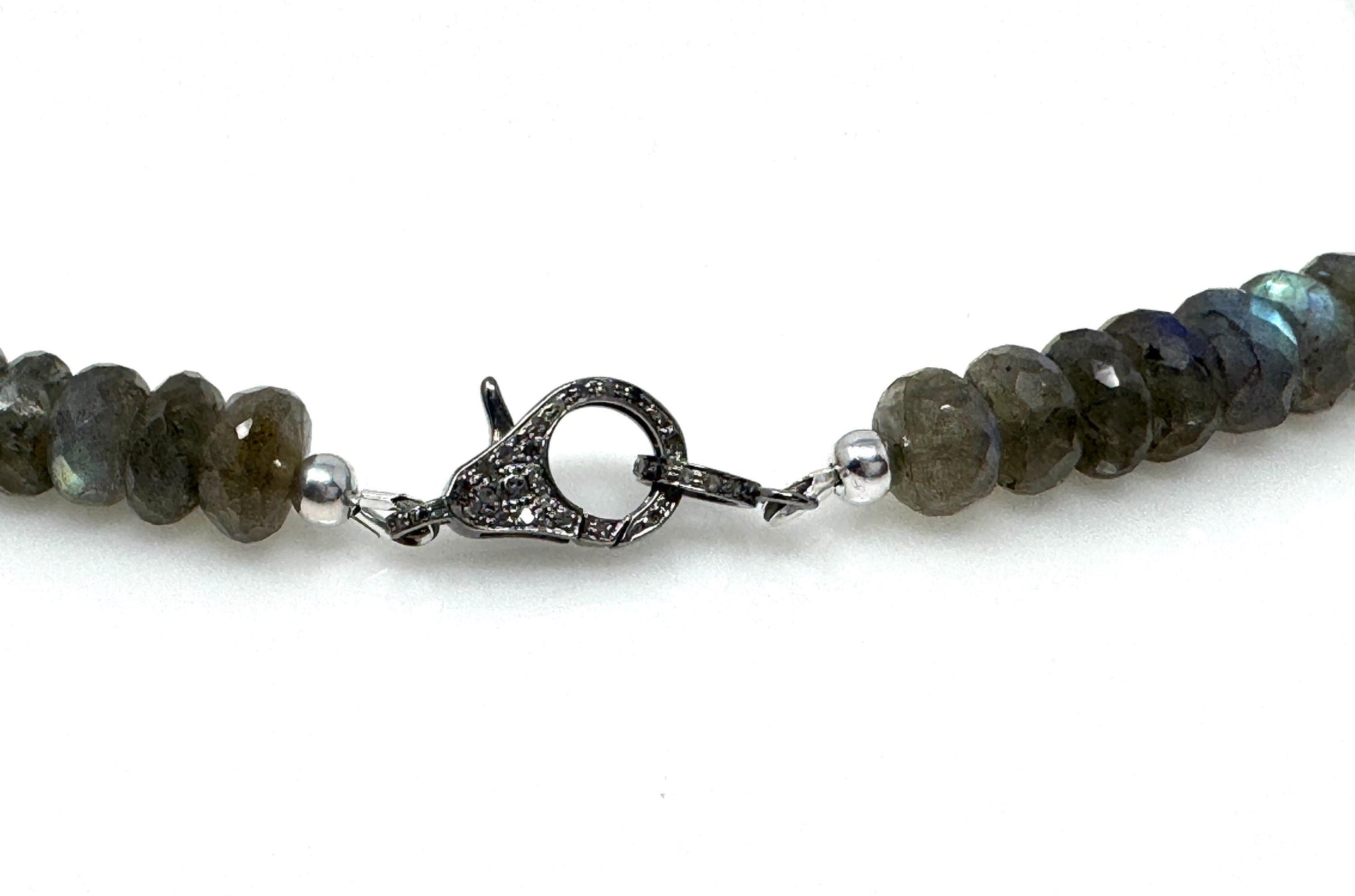 Natural Multi Fire Labradorite Beaded Necklace with Genuine Pave Diamonds in the Clasp.