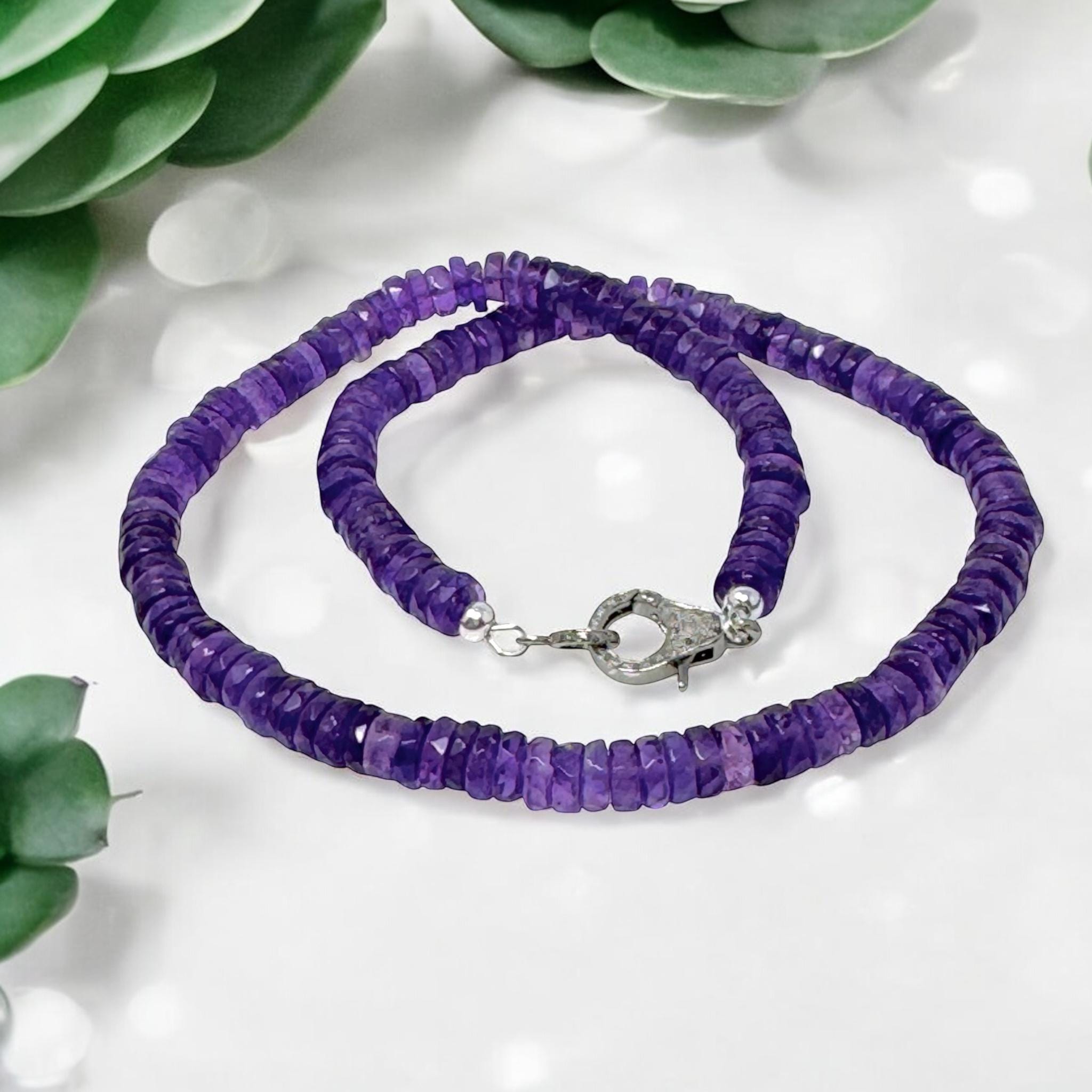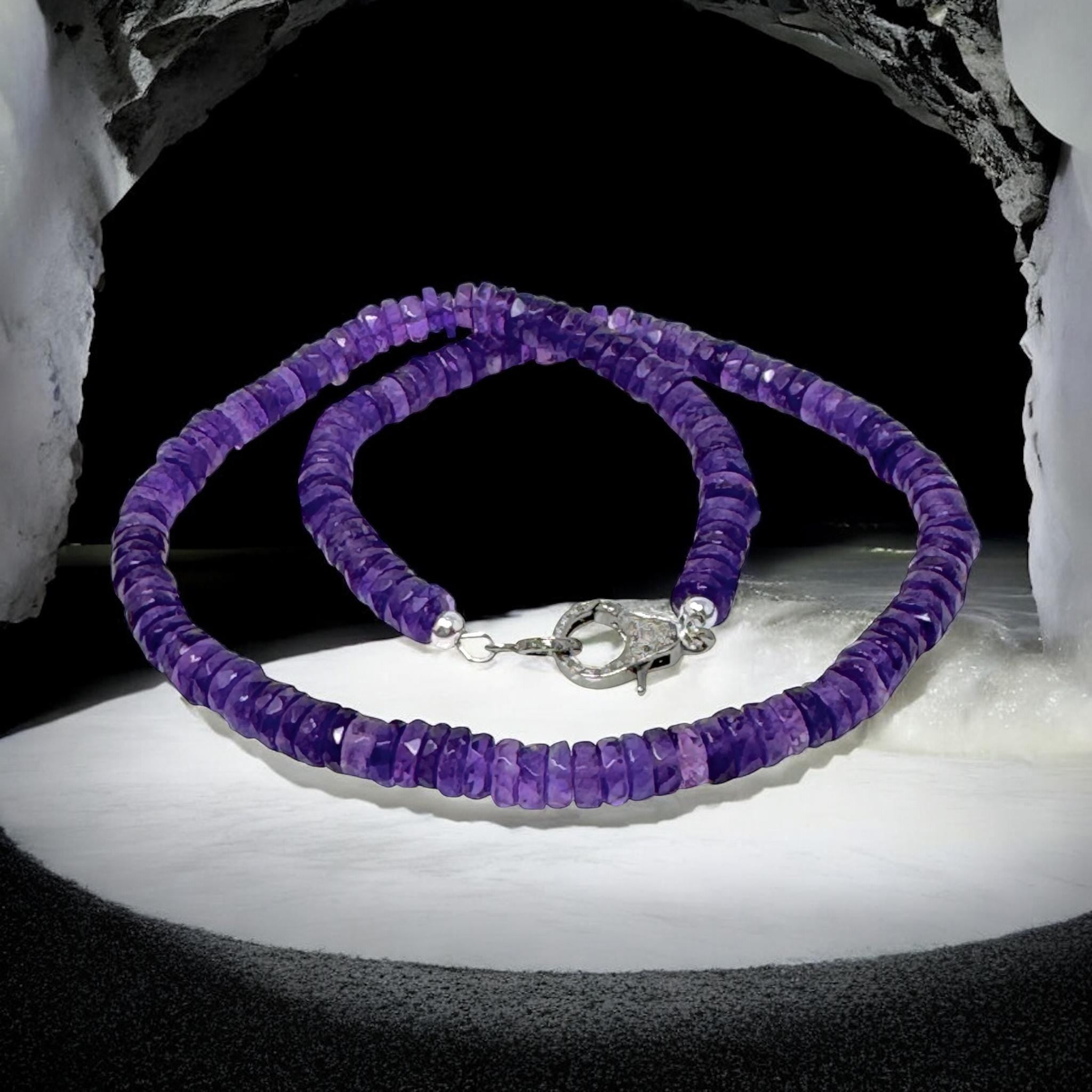 Natural Amethyst Beaded Necklace with Genuine Pave Diamonds in the Clasp.