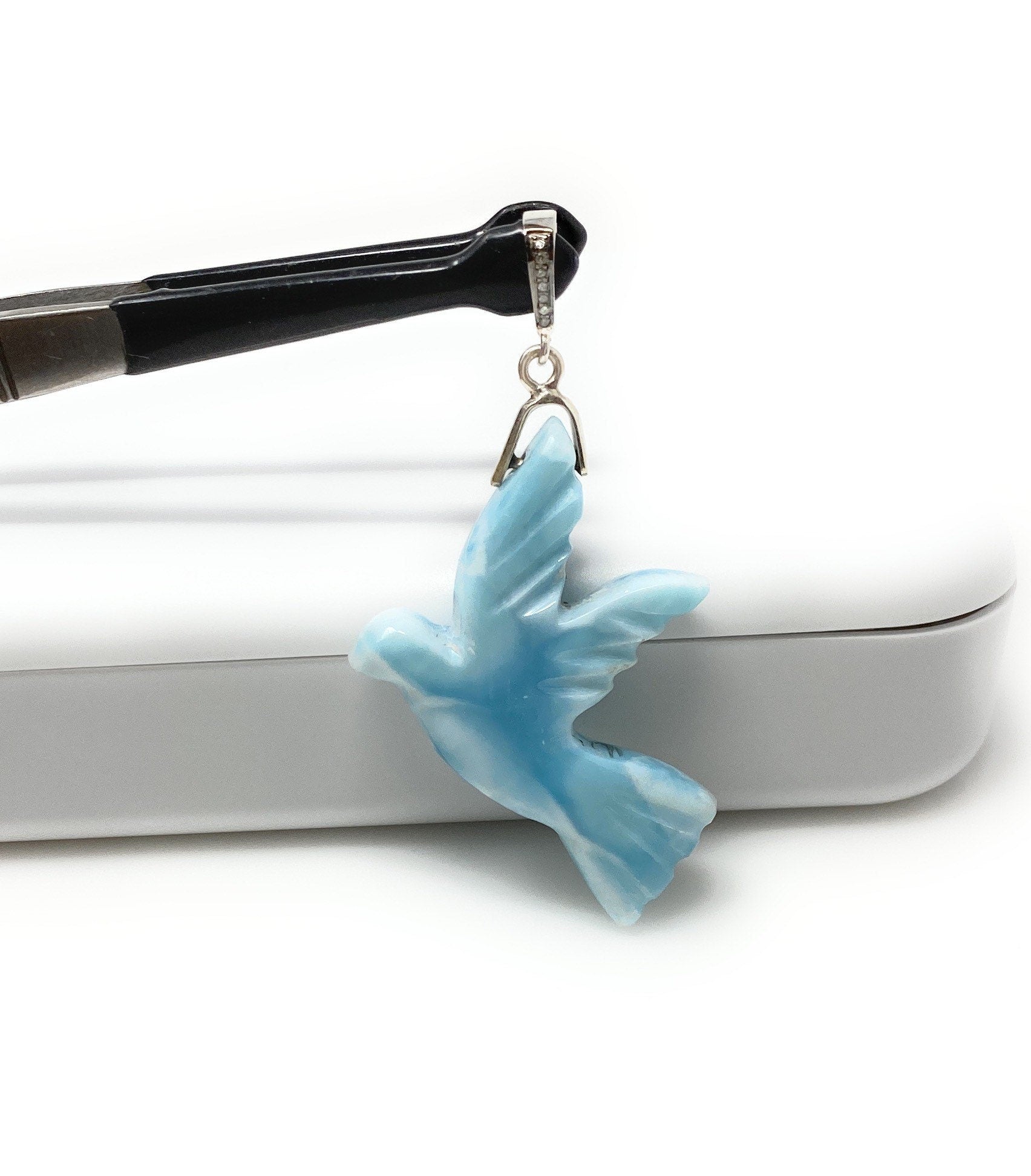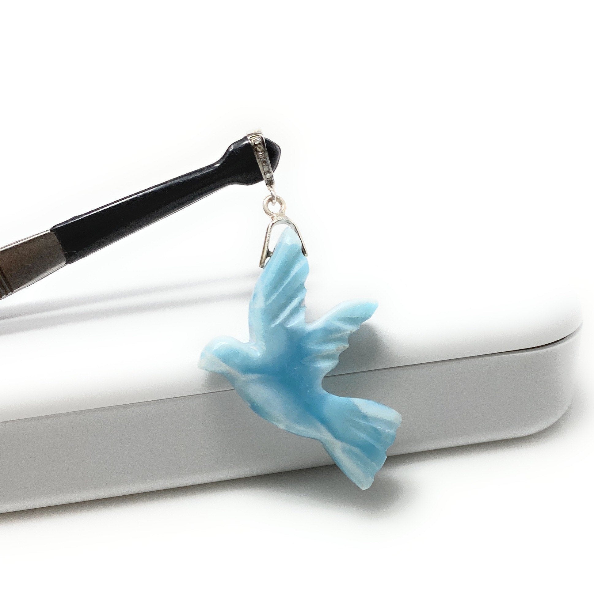 18g Rare Large Larimar Bird Pendant, Pave Diamond Larimar Pendant, Silver Bohemian Jewelry, Dominican Republic Larimar Pendant