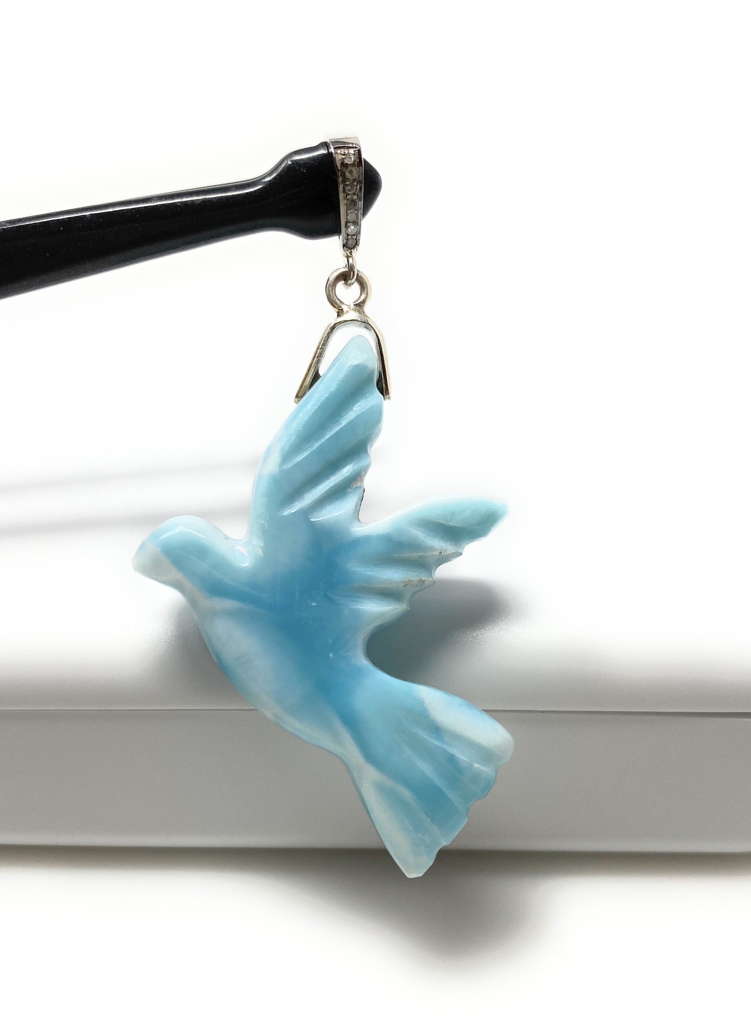 Pave Diamond Larimar Gemstone Sterling Silver Bird Pendant Jewelry at Wholesale Price.