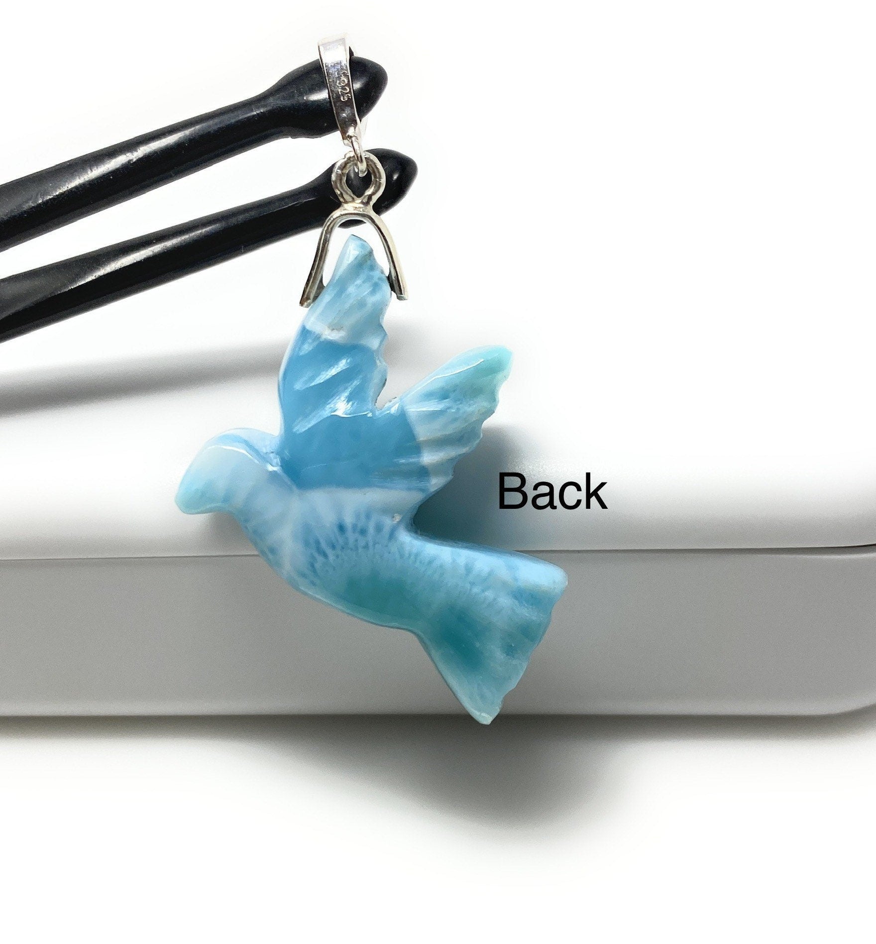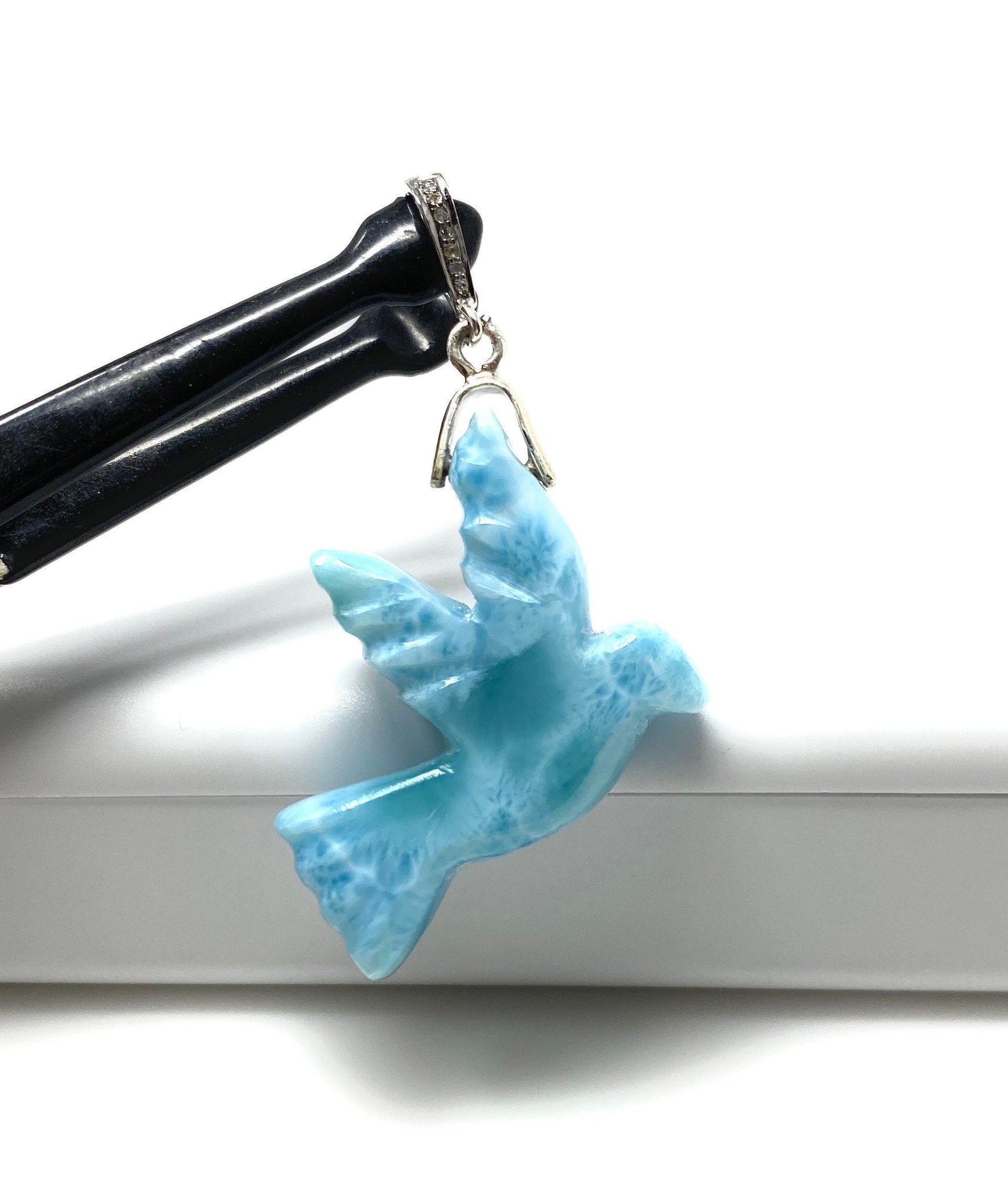 18g Rare Large Larimar Bird Pendant, Pave Diamond Larimar Pendant, Silver Bohemian Jewelry, Dominican Republic Larimar Pendant