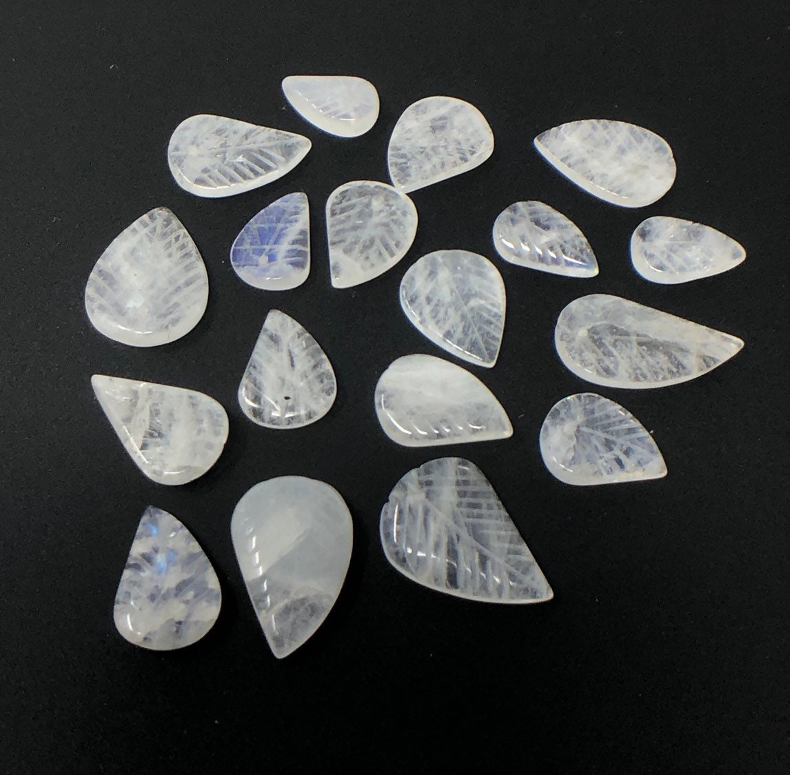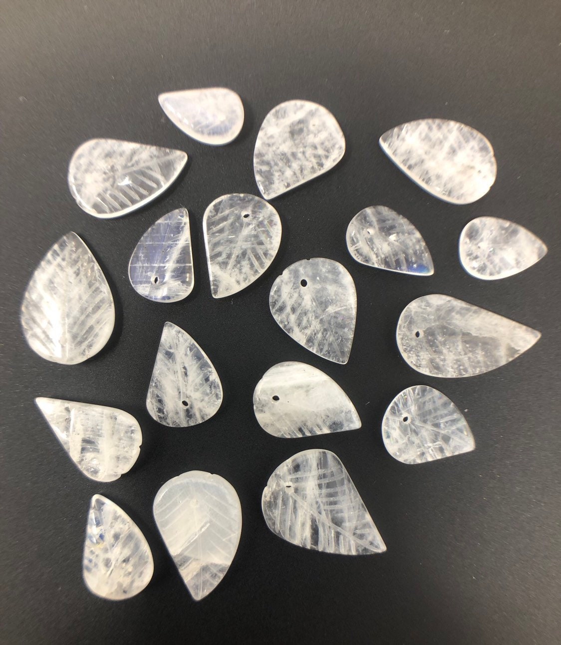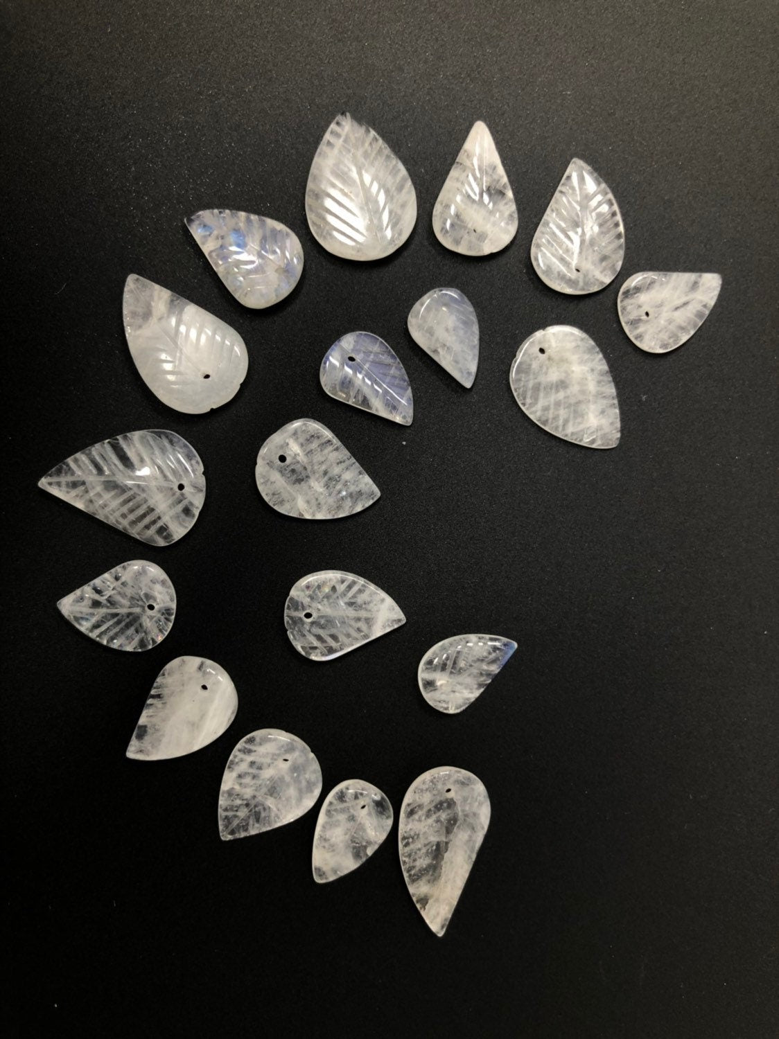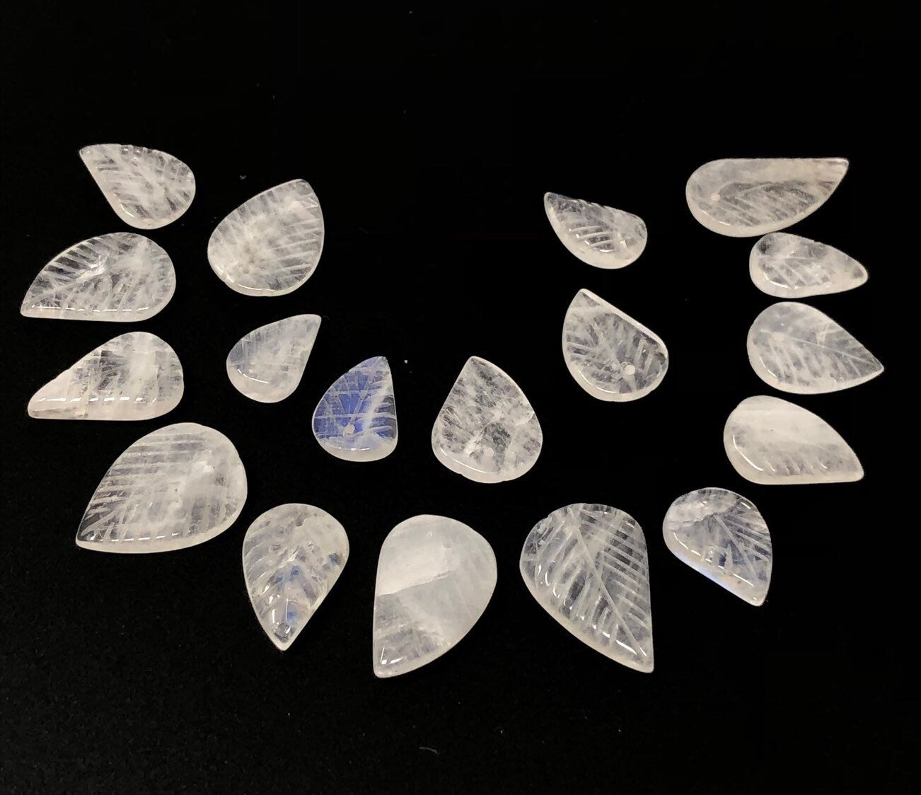 19 PIECES of Moonstone Carved Leaf Beads Top Front Drilled Jewelry Supplies for DIY Jewelry Making at Wholesale Price.