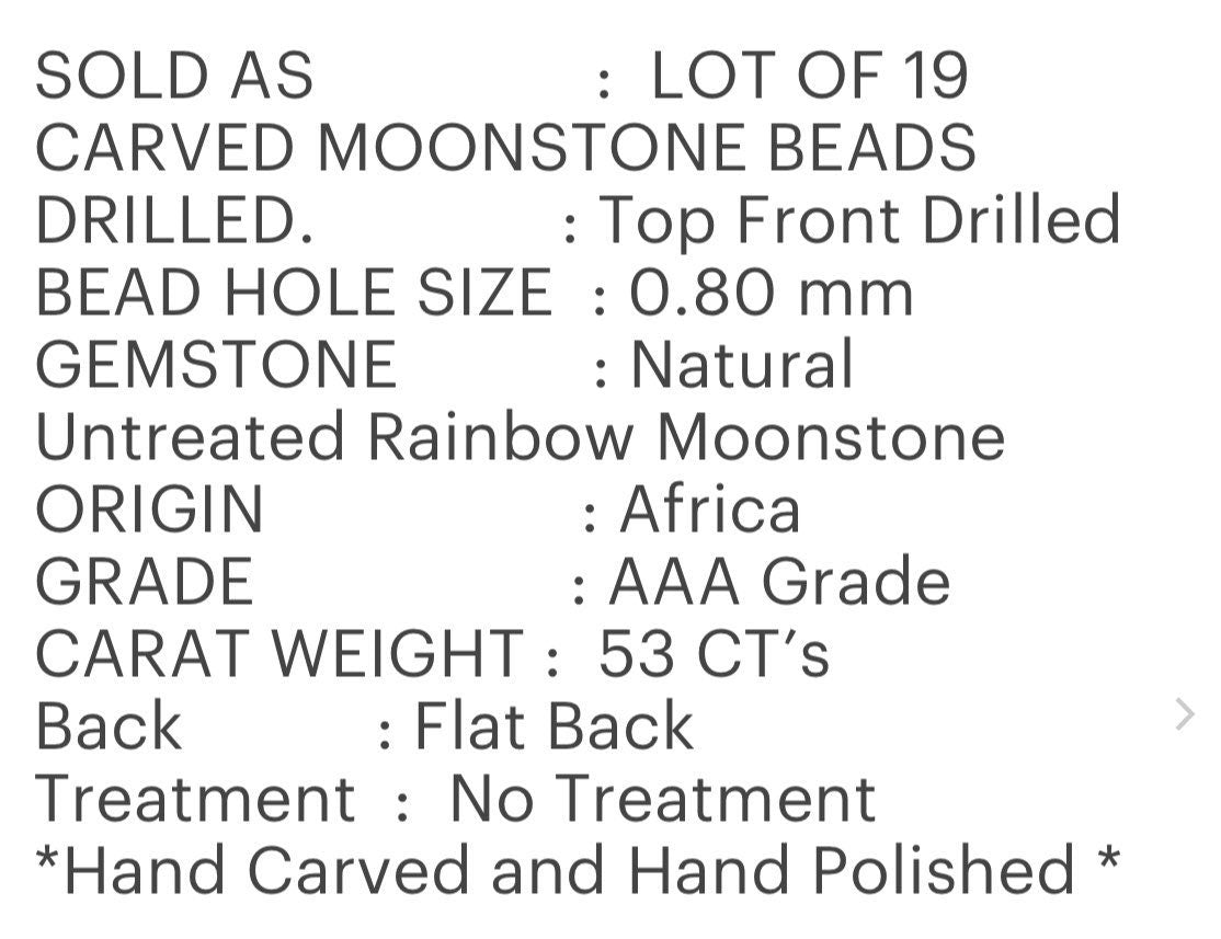 SOLD AS : LOT OF 19 CARVED MOONSTONE BEADS