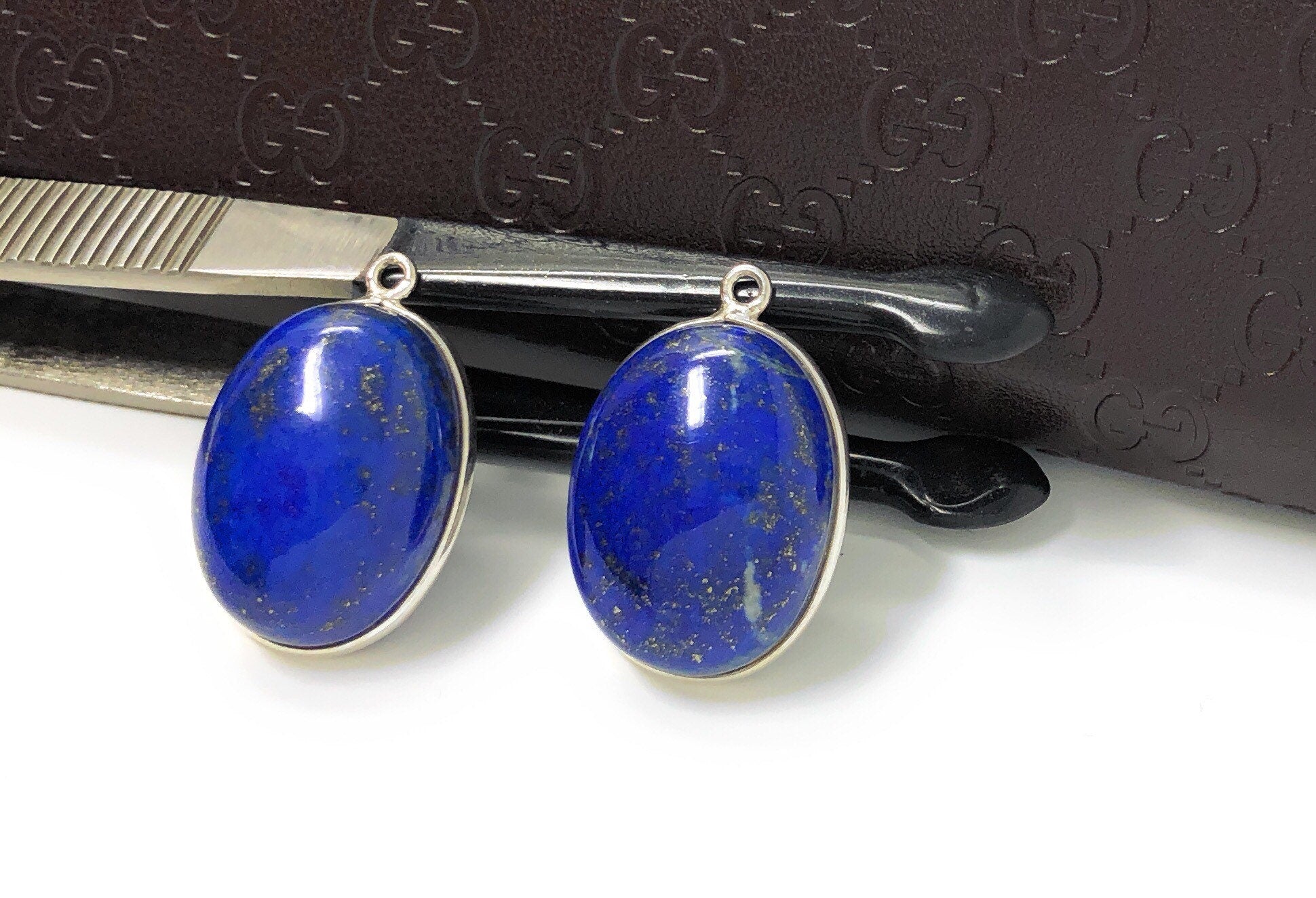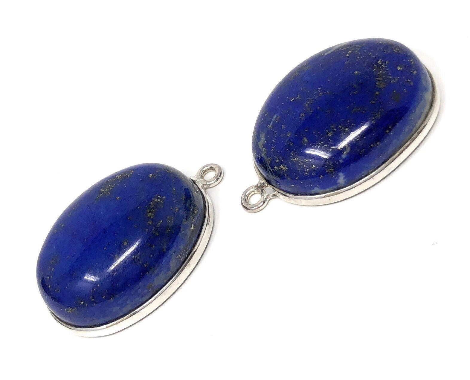 Bulk Lot 2 Pcs Sterling Silver Natural Gemstone Smooth Lapis Lazuli Bezel Set Charm Jewelry Supplies for Jewelry Making at Wholesale Price.
