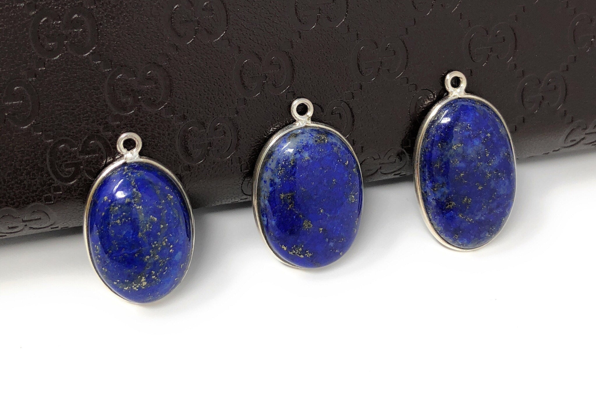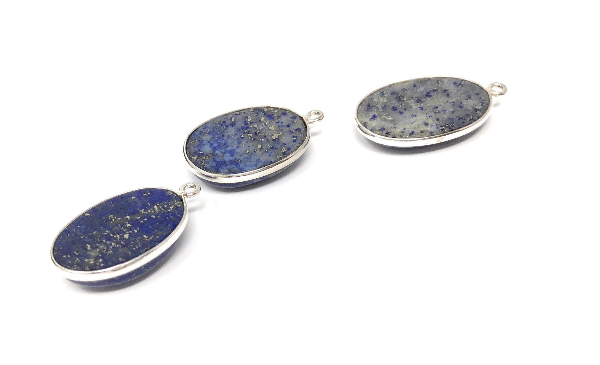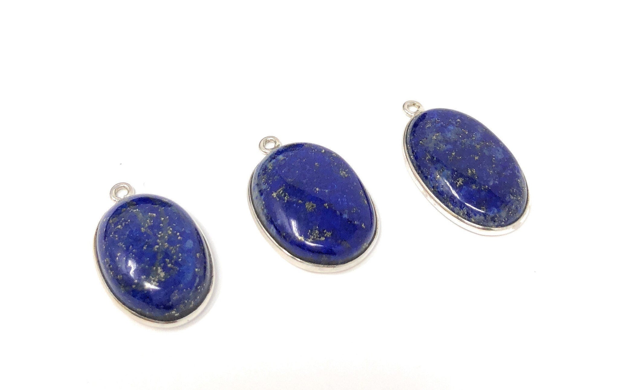 Bulk Lot 3 Pcs Sterling Silver Natural Gemstone Smooth Lapis Lazuli Bezel Set Charm Jewelry Supplies for Jewelry Making at Wholesale Price.