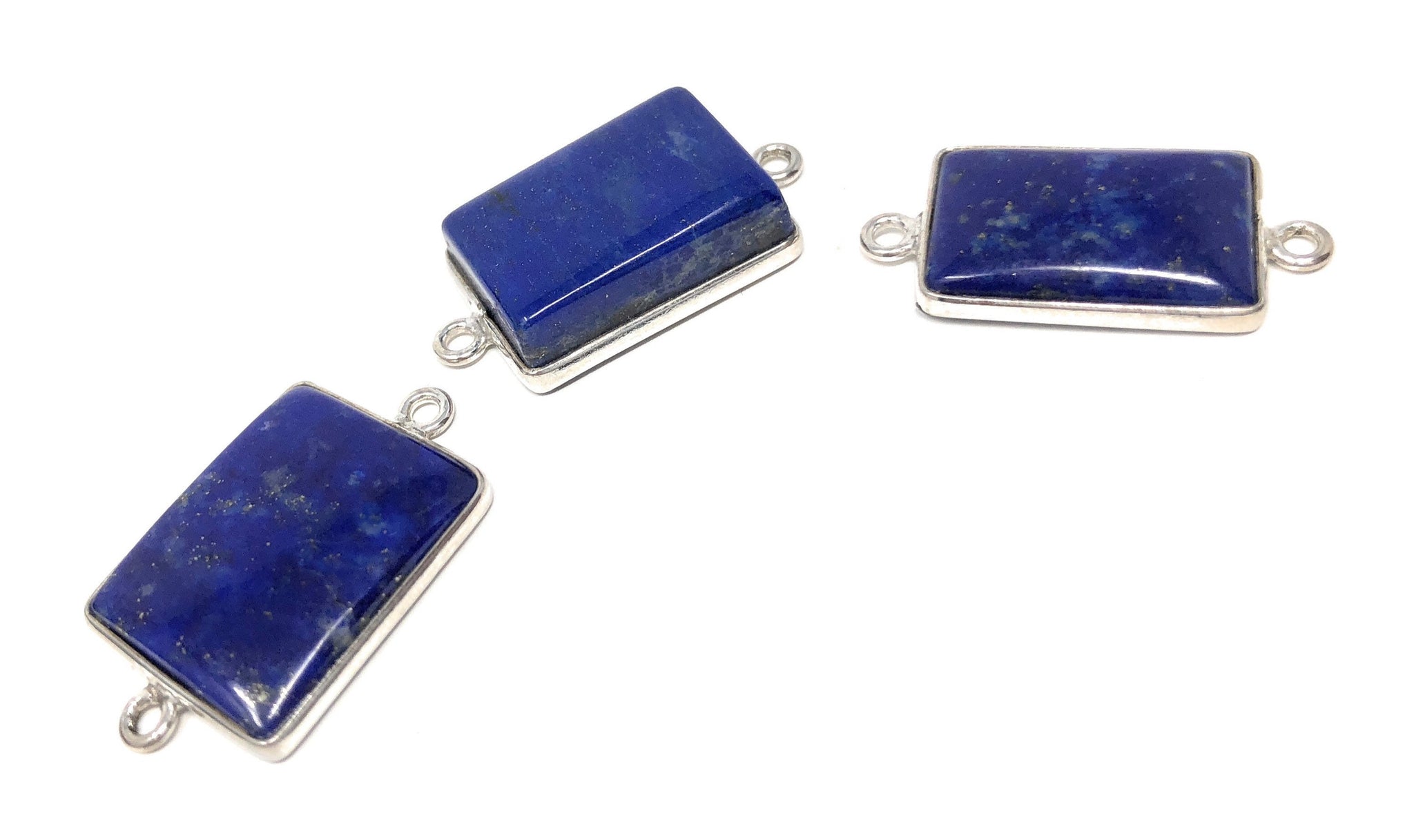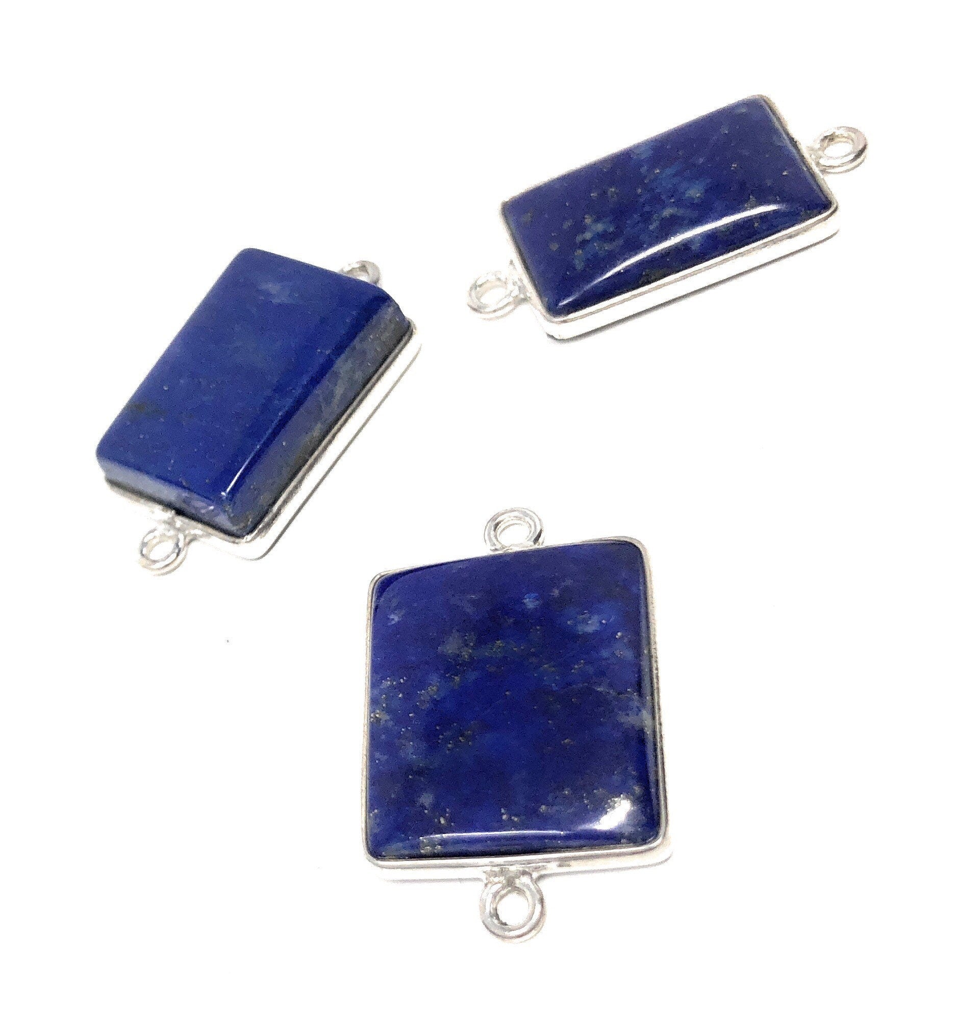 This Beautiful Bulk lot of 3 Pieces of Handmade 925 Sterling Silver Rectangle Shape Natural Smooth Polished Lapis Lazuli Gemstone Charm Connectors is an excellent choice for making any Jewelry Design. These can be used for making Charm Bracelet, Pendant Necklace or can be used to make any creative Jewelry Design.