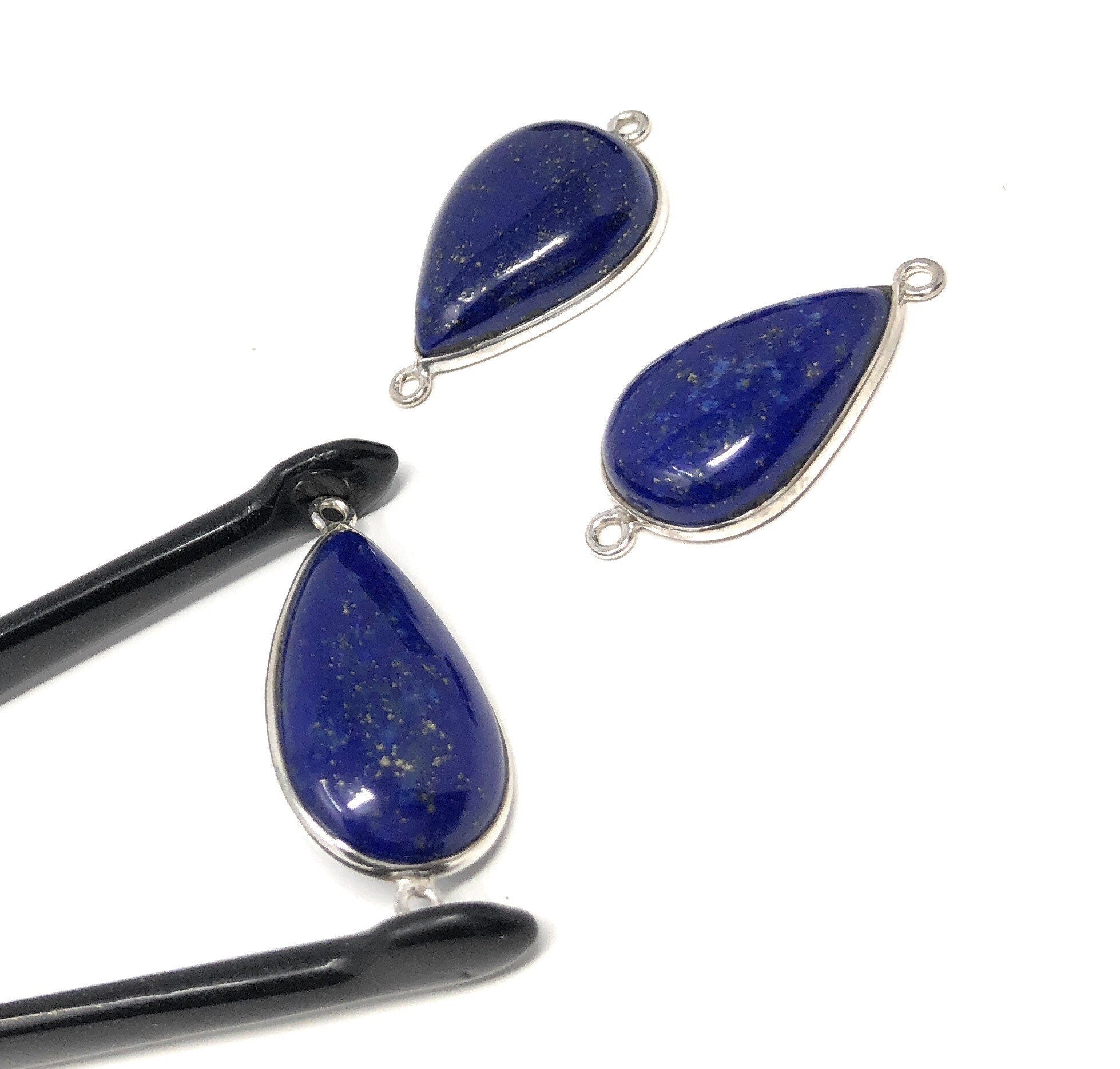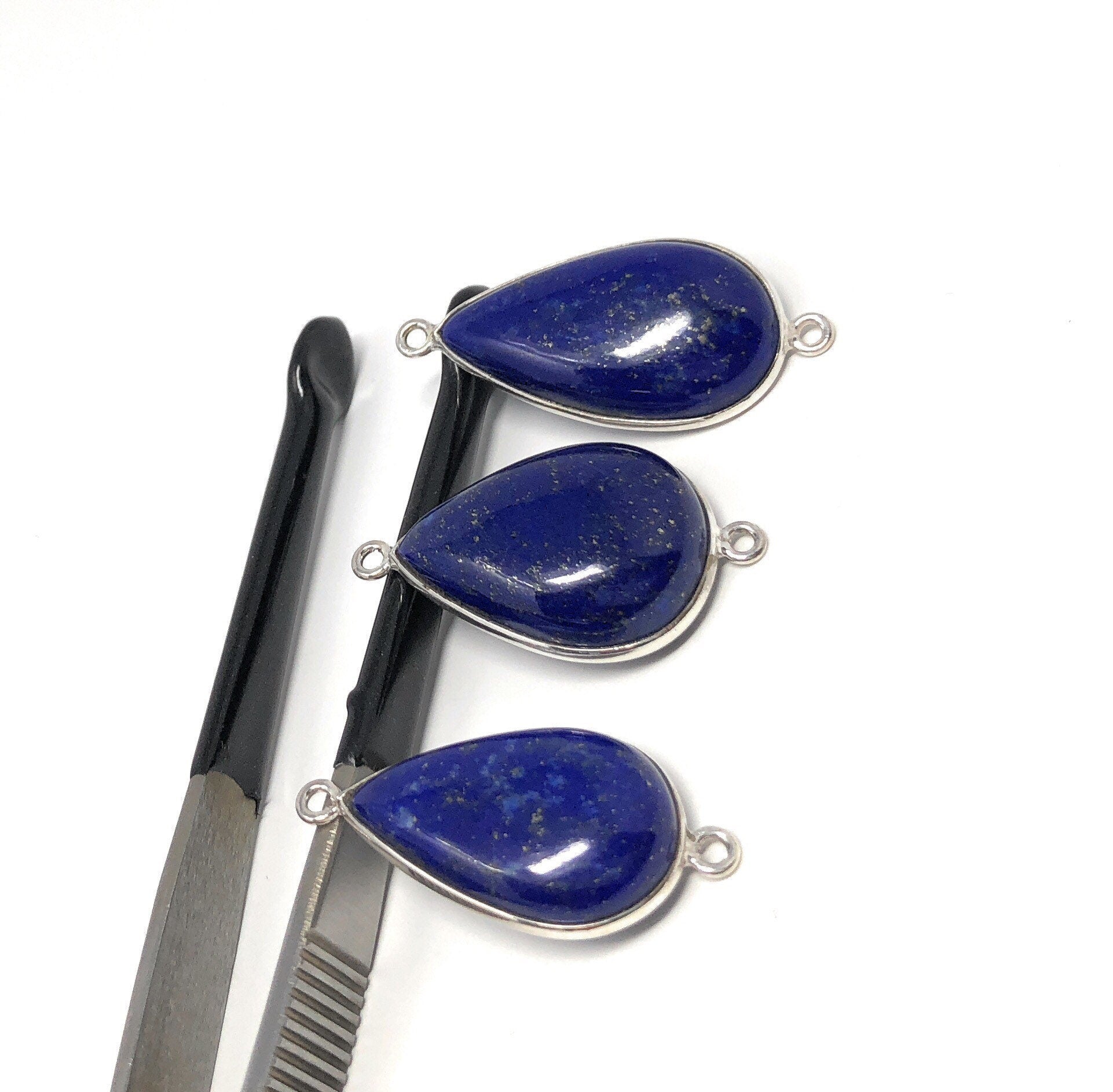 This Beautiful Bulk lot of 3 Pieces of Handmade 925 Sterling Silver Drop Shape Natural Smooth Polished Lapis Lazuli Gemstone Charm Connectors is an excellent choice for making any Jewelry Design. These can be used for making Charm Bracelet, Pendant Necklace or can be used to make any creative Jewelry Design.