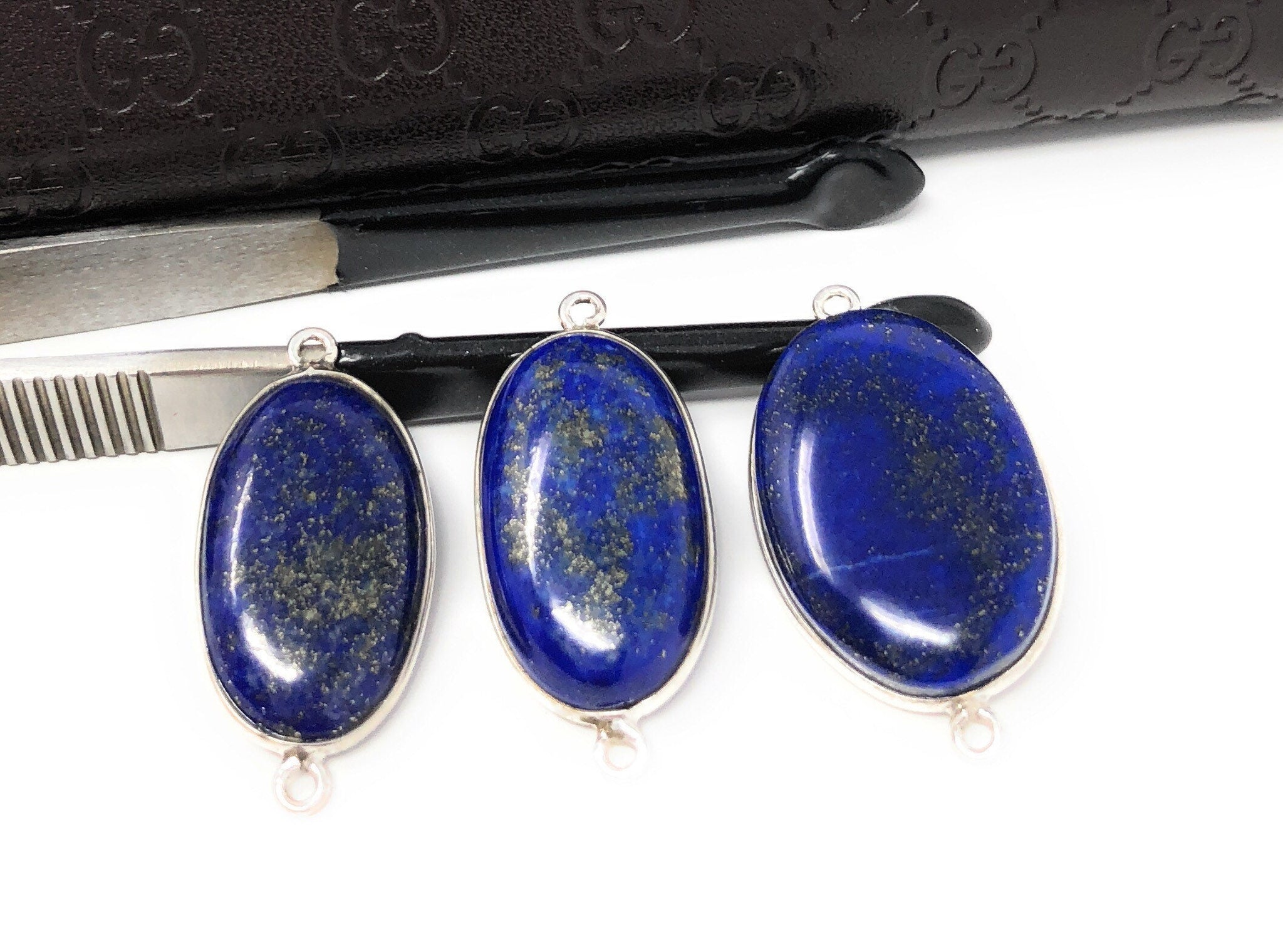 3 Pcs Lot of Sterling Silver Natural Gemstone Smooth Lapis Lazuli Bezel Set Connector Jewelry Findings for Jewelry Making at Wholesale Price.