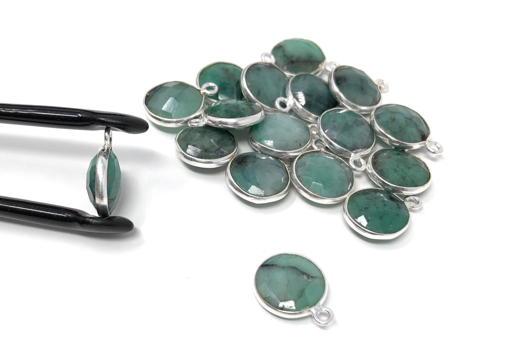 4 Pcs Sterling Silver Gemstone Emerald Charms Bezel Set Add a Charm Jewelry Supplies for Jewelry Making at Wholesale Price.