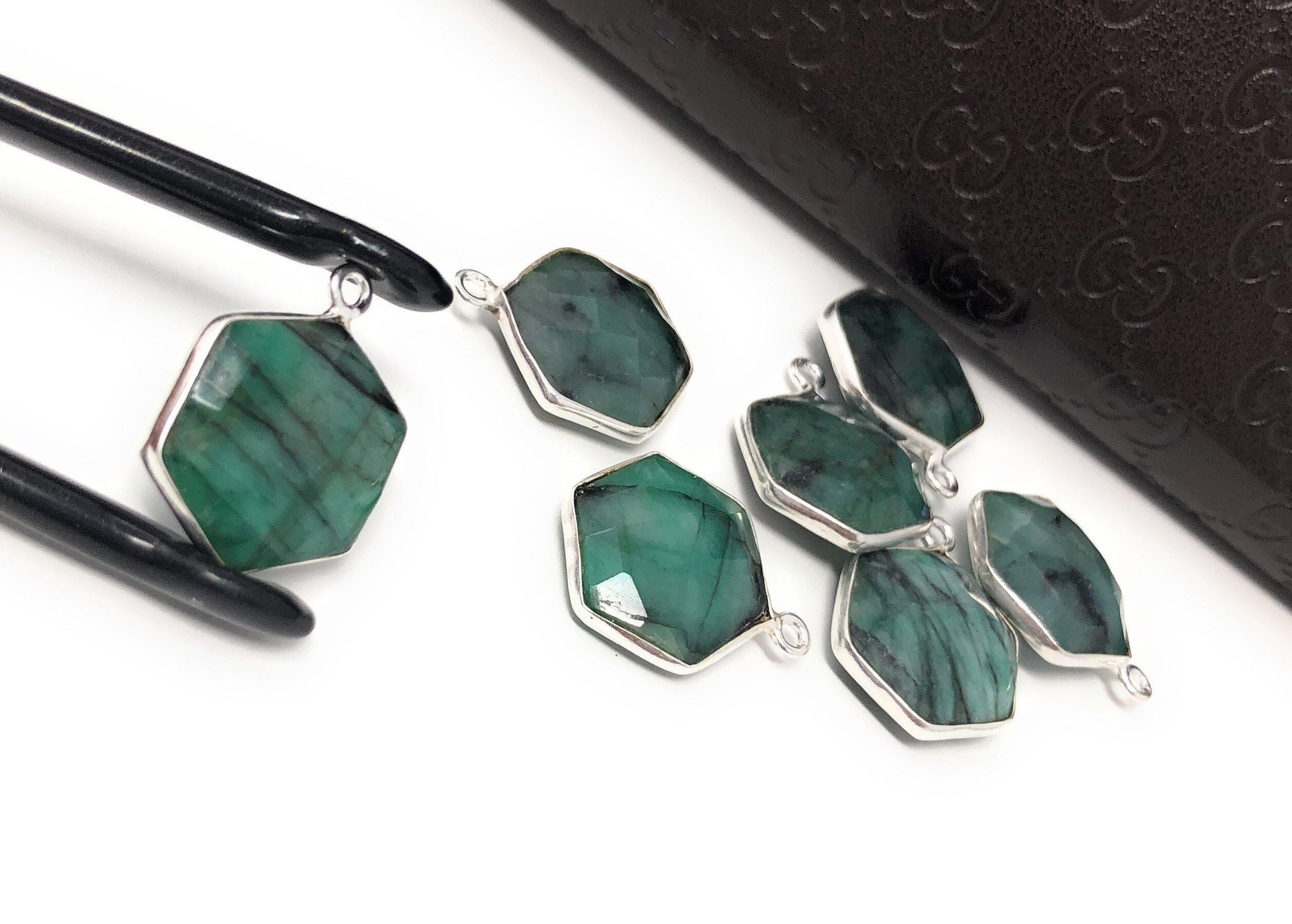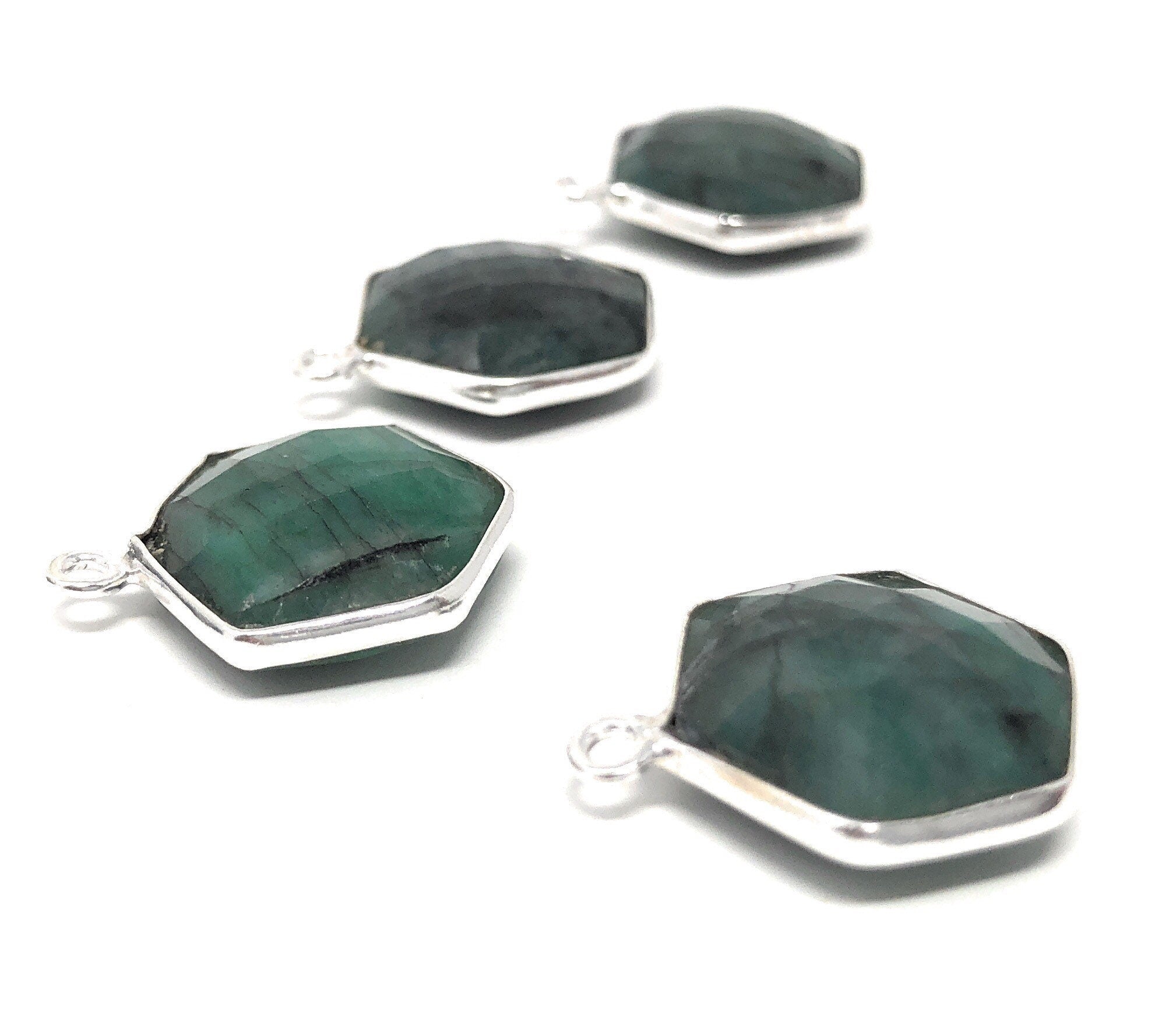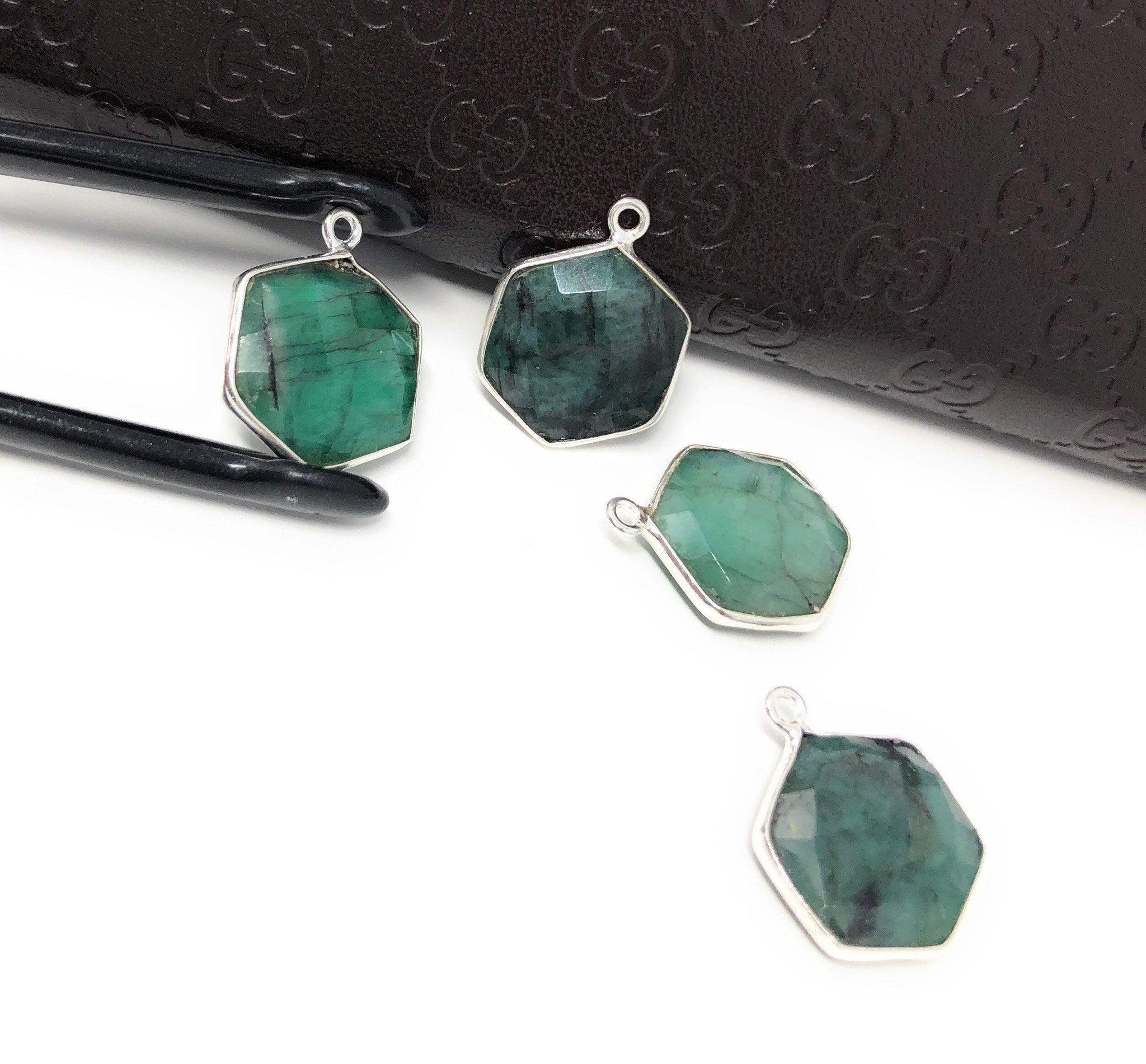 These beautiful Sterling Silver Double Sided Bezel Set Faceted Sakota Emerald Charms are handmade and can be used used for making any creative Jewelry Piece.