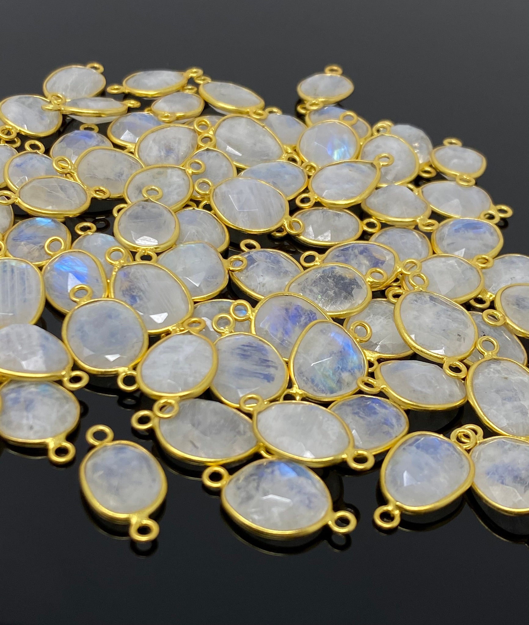 14K Gold Plated over 925 Sterling Silver Faceted Rainbow Moonstone Handmade Connector Flat Back for Jewelry Making at Wholesale Price.