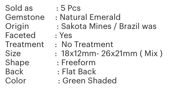5 Pcs Large Natural Emerald Rose Cut Cabochons, Loose Gemstones, Ring Stones, 18x12mm - 26x21mm