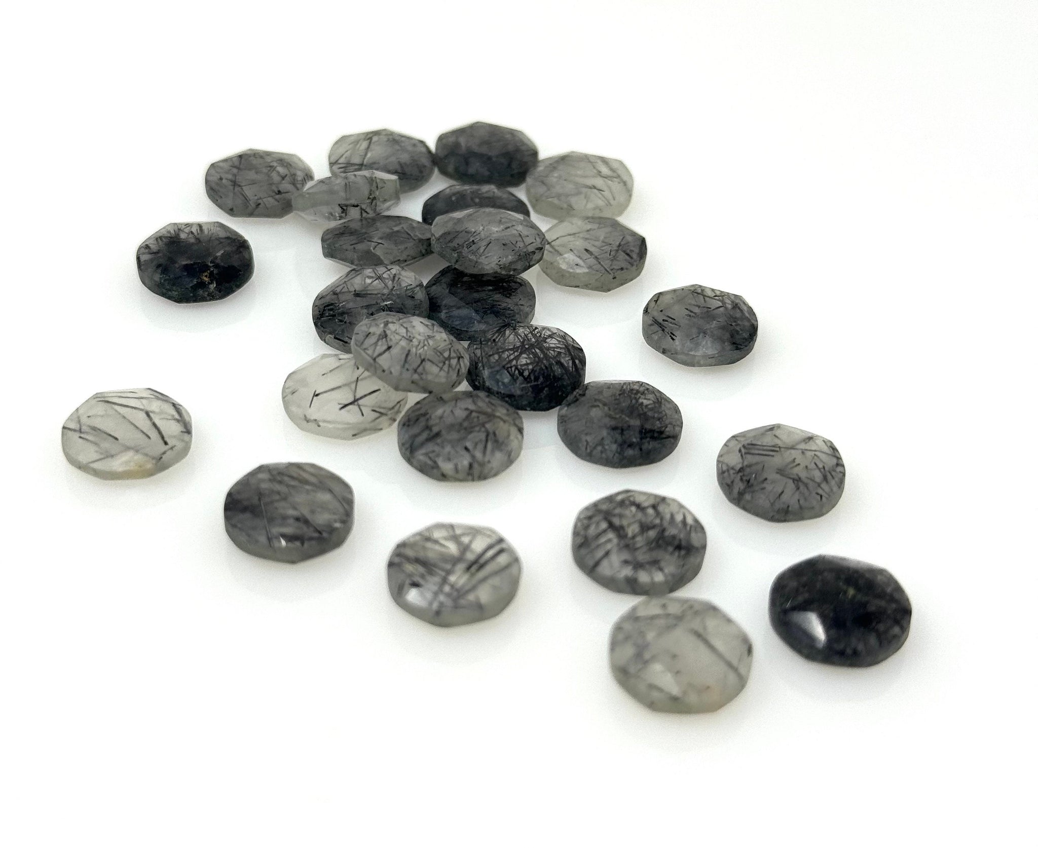 5 Pcs Natural Black Rutile Rose Cut Cabochons, Loose Gemstones, Briolette Ring Stones, 10mm