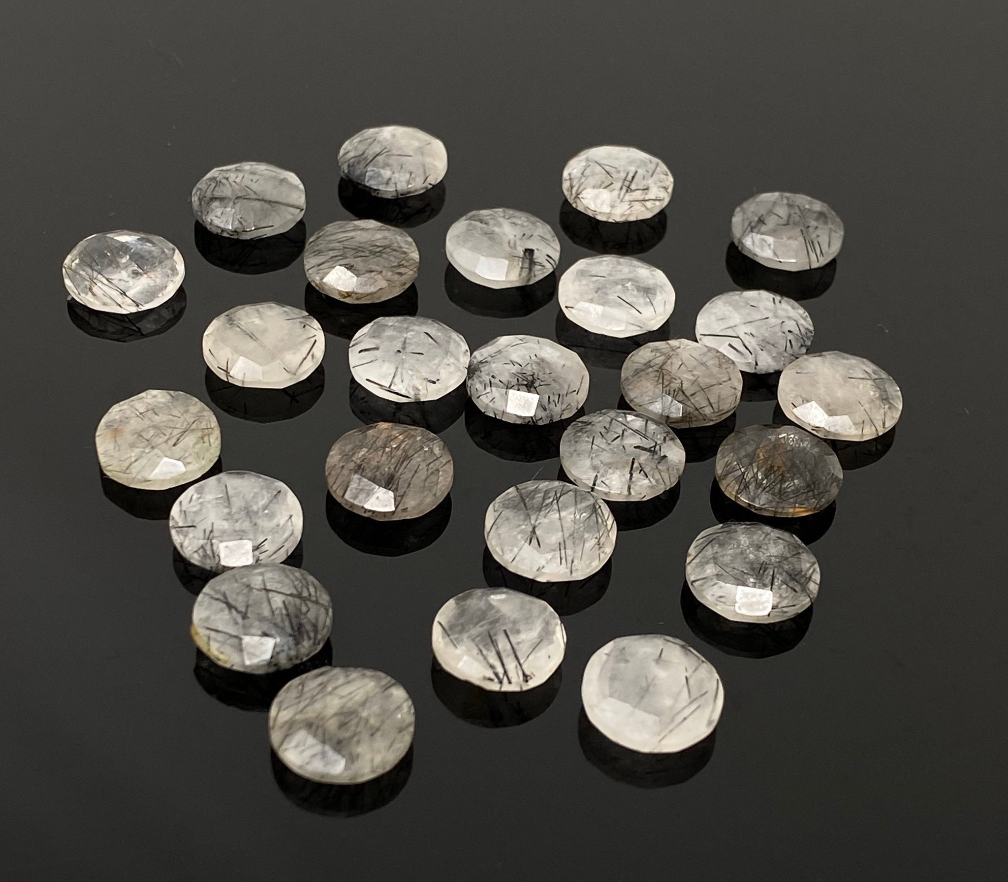 5 Pcs Natural Black Rutile Rose Cut Cabochons, Loose Gemstones, Briolette Ring Stones, 12mm - 12.5mm approx.
