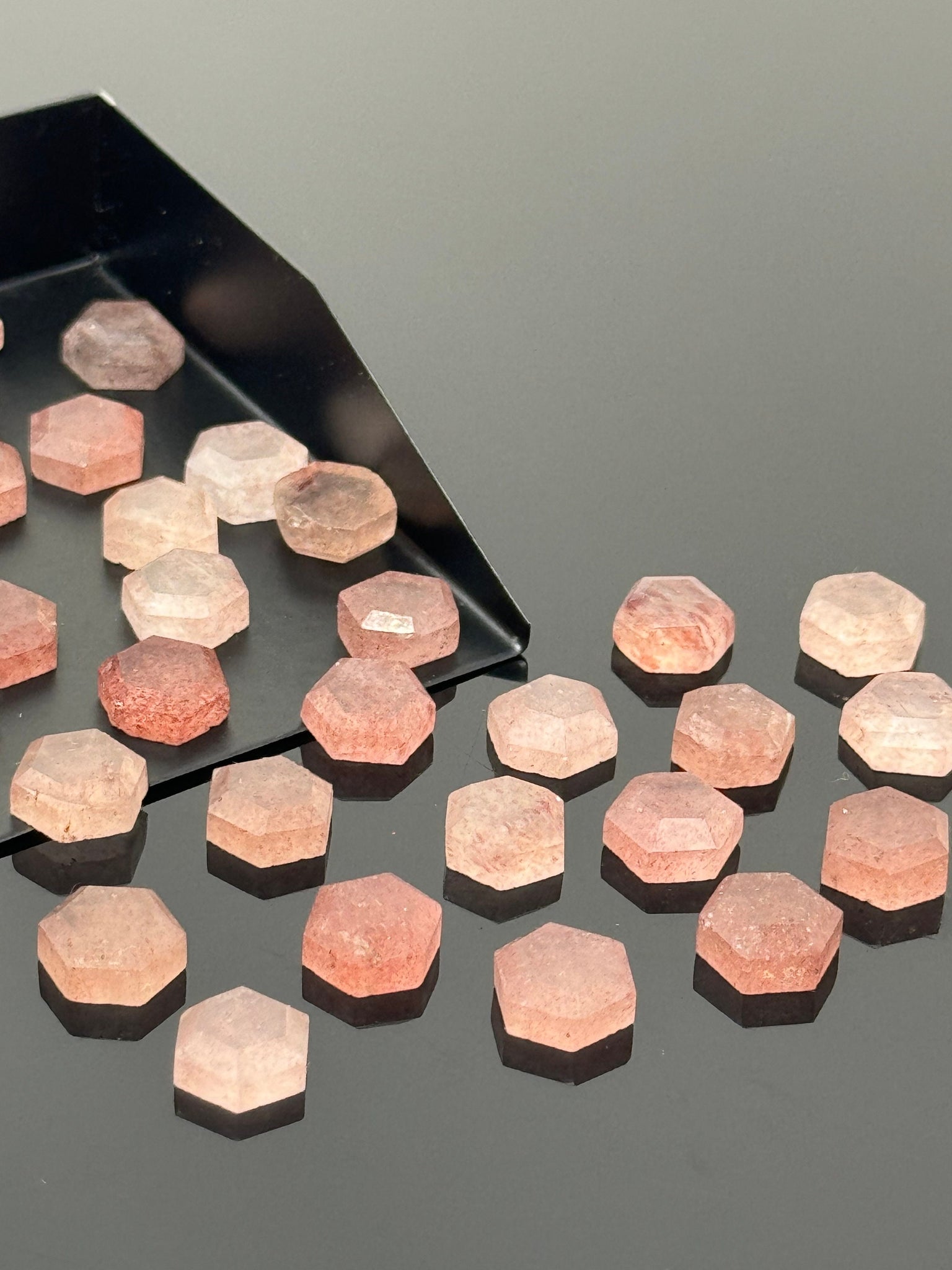 Strawberry Quartz Hexagon Shape Rose Cut Loose Gemstones Jewelry Supplies for Jewelry Making at Wholesale Price.