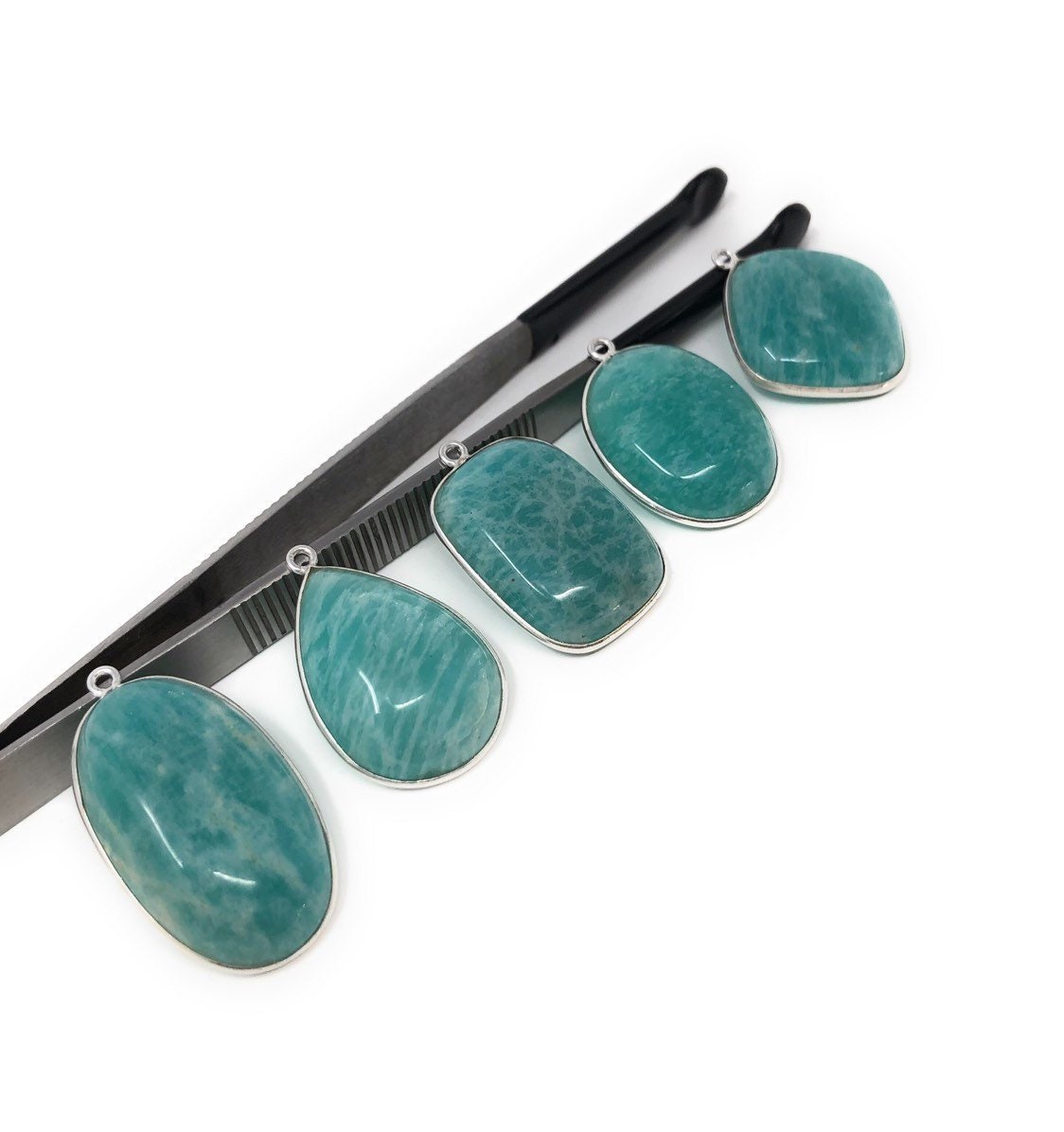 Wholesale 5 Pcs Sterling Silver Natural Gemstone Amazonite Charms Jewelry Supplies for Jewelry Making.