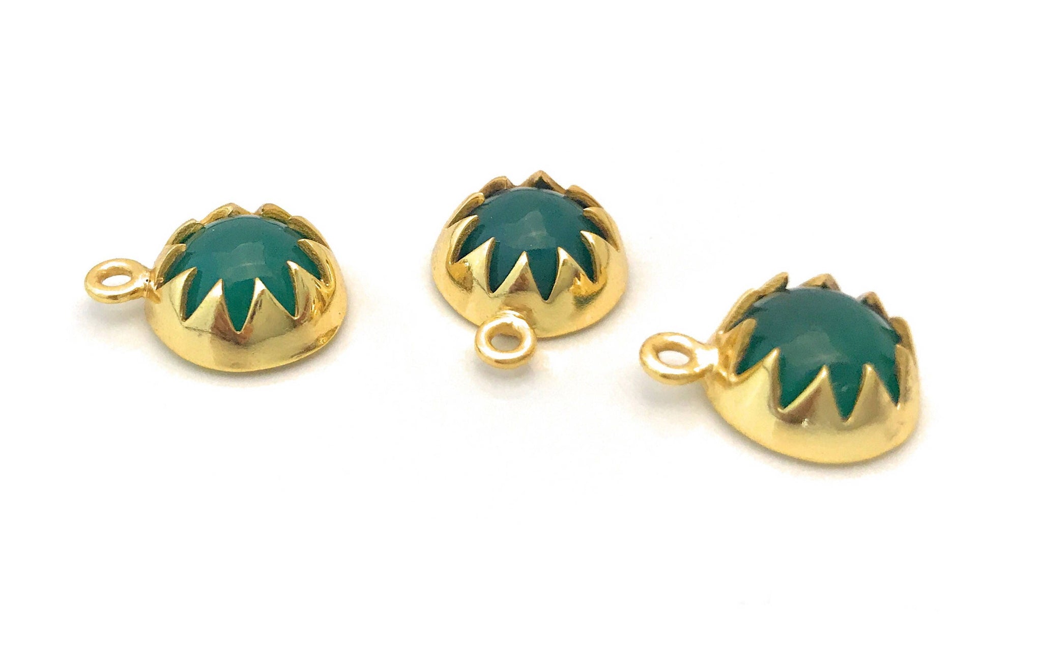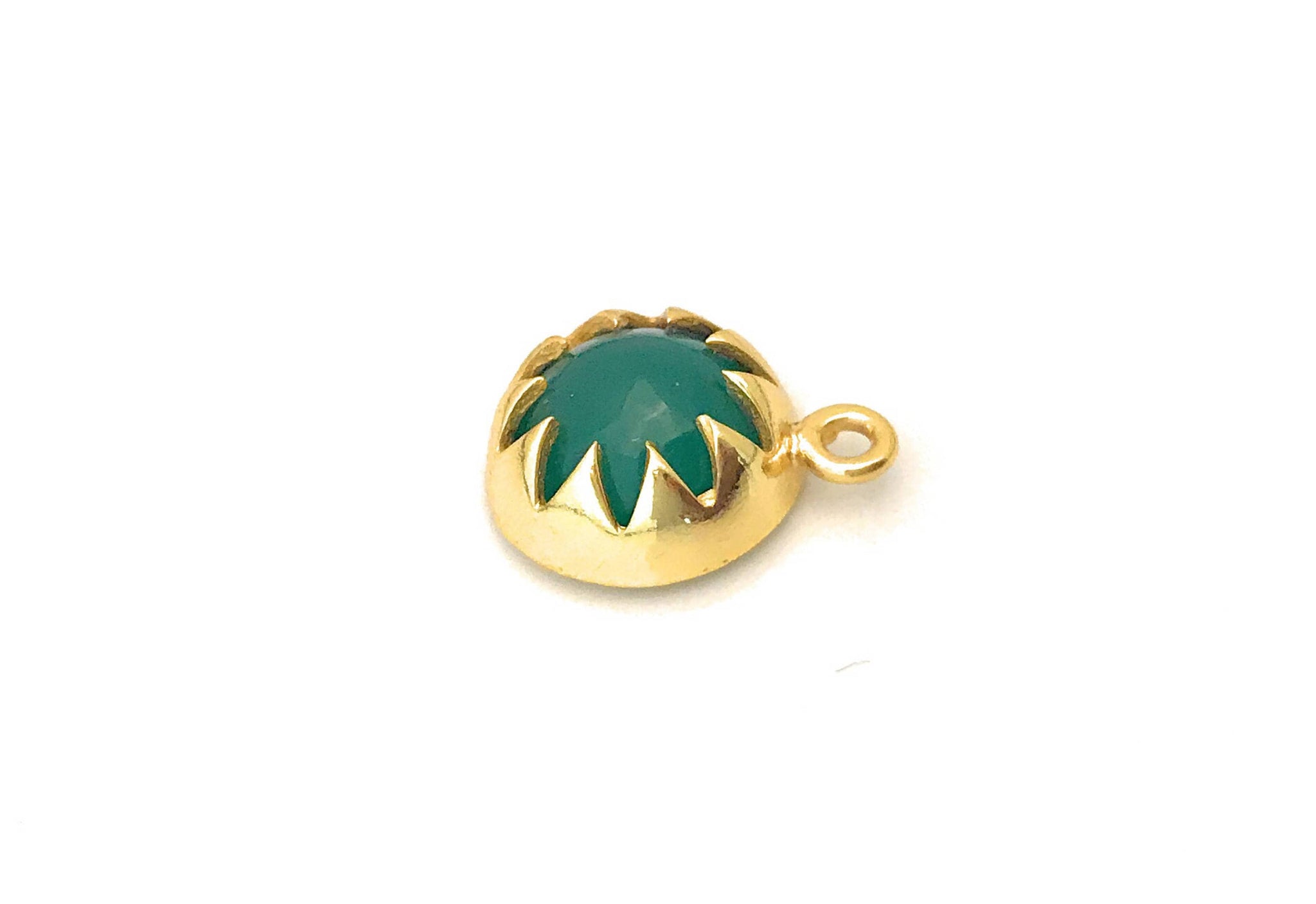 This beautiful exclusive AAA Grade Rose Cut 14K Gold Plated ( 1 Micron ) Green onyx Gemstone Charm is an excellent choice for making any Jewelry Design. It can be used for making,Charm Bracelet , Charm Pendant for a Necklace or can be used for making exclusive Dangle Earrings or Anklet.