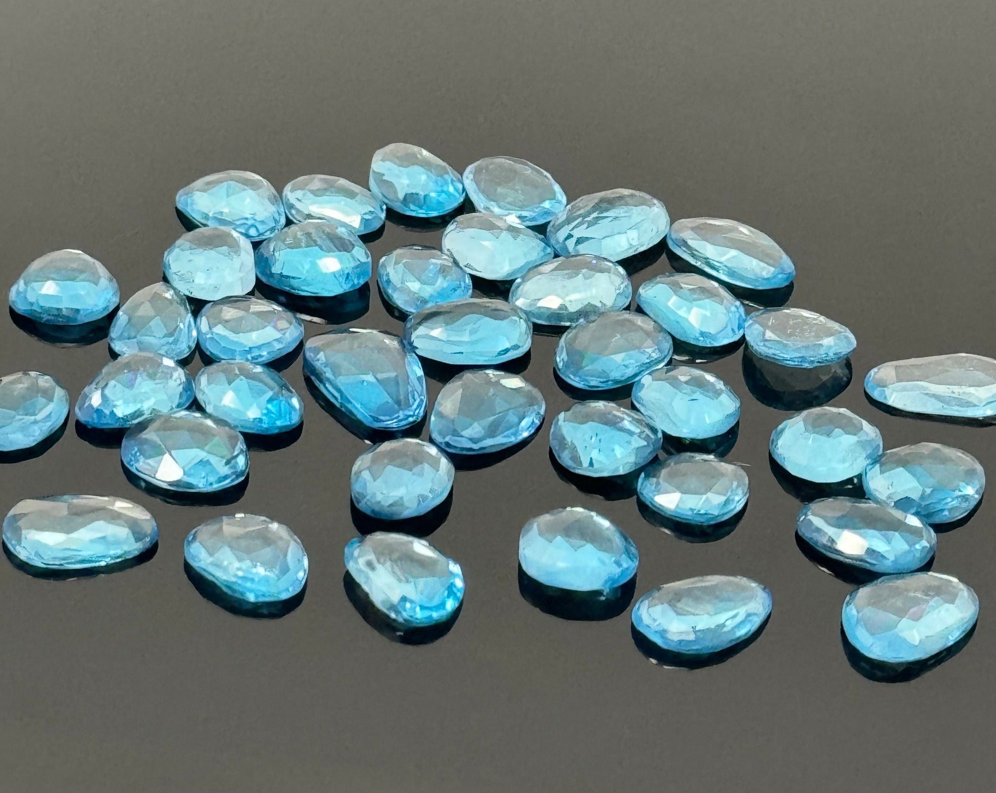 6Pcs Swiss Blue Topaz Rosecut Cabochons, Loose Gemstones, Blue Topaz Rose Cuts, 8x7mm - 12x9mm