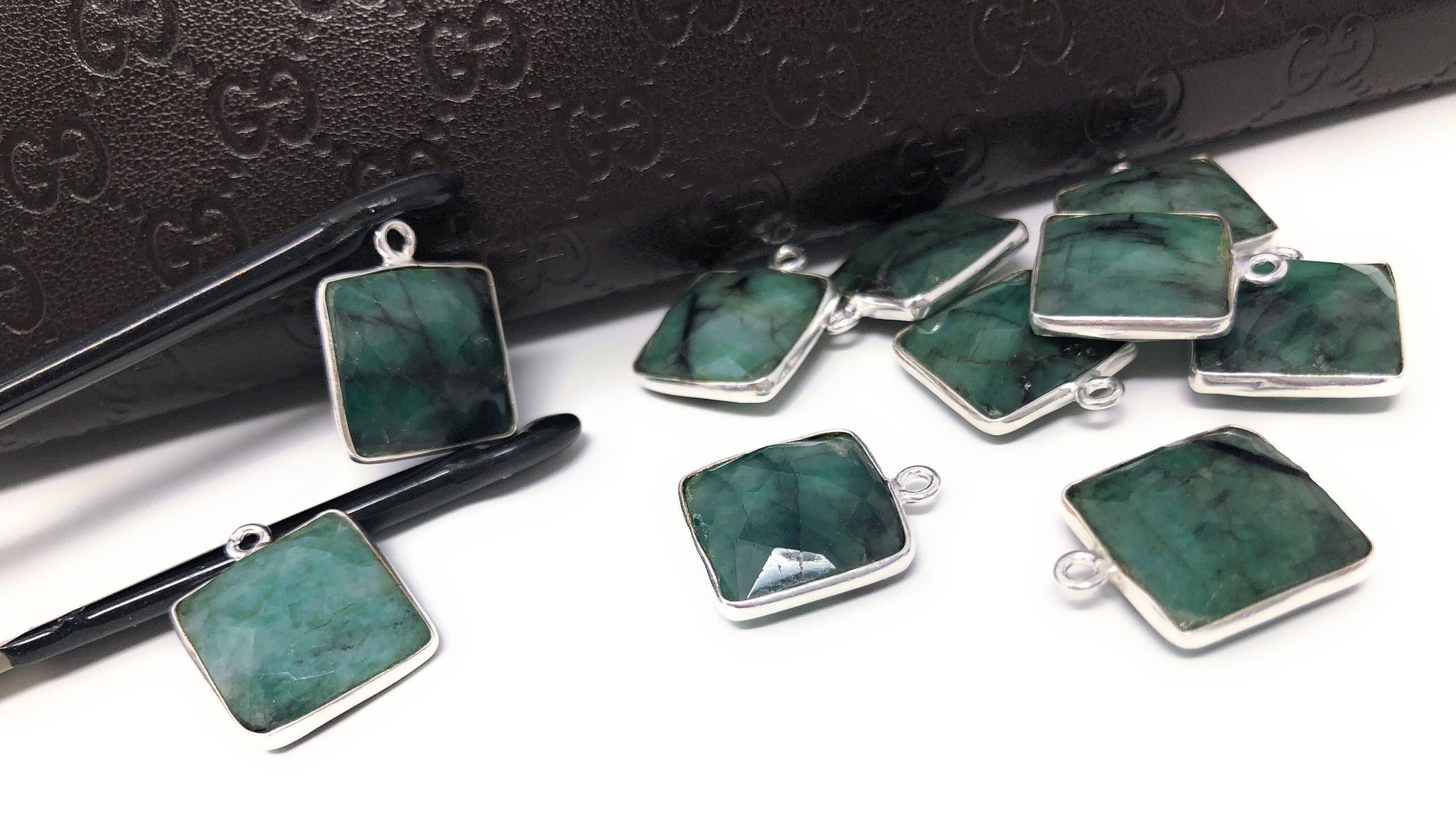 These beautiful Sterling Silver Bezel Set Faceted Sakota Emerald Charms are handmade and can be used used for making any creative Jewelry Piece.