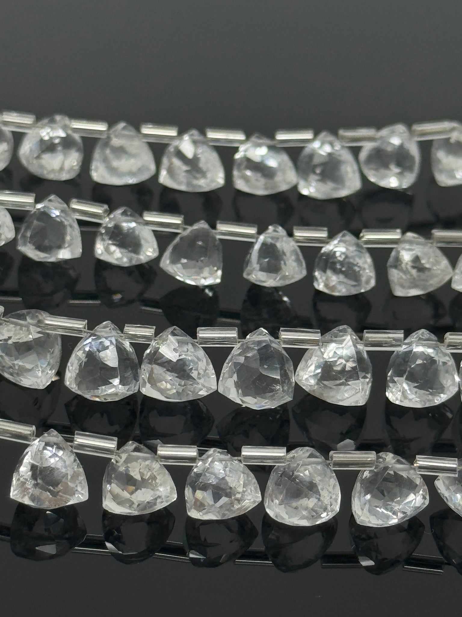 7.5” Clear Crystal Quartz Trillion Shape Briolette Gemstone Beads, Wholesale Bulk Beads, 8mm-10mm
