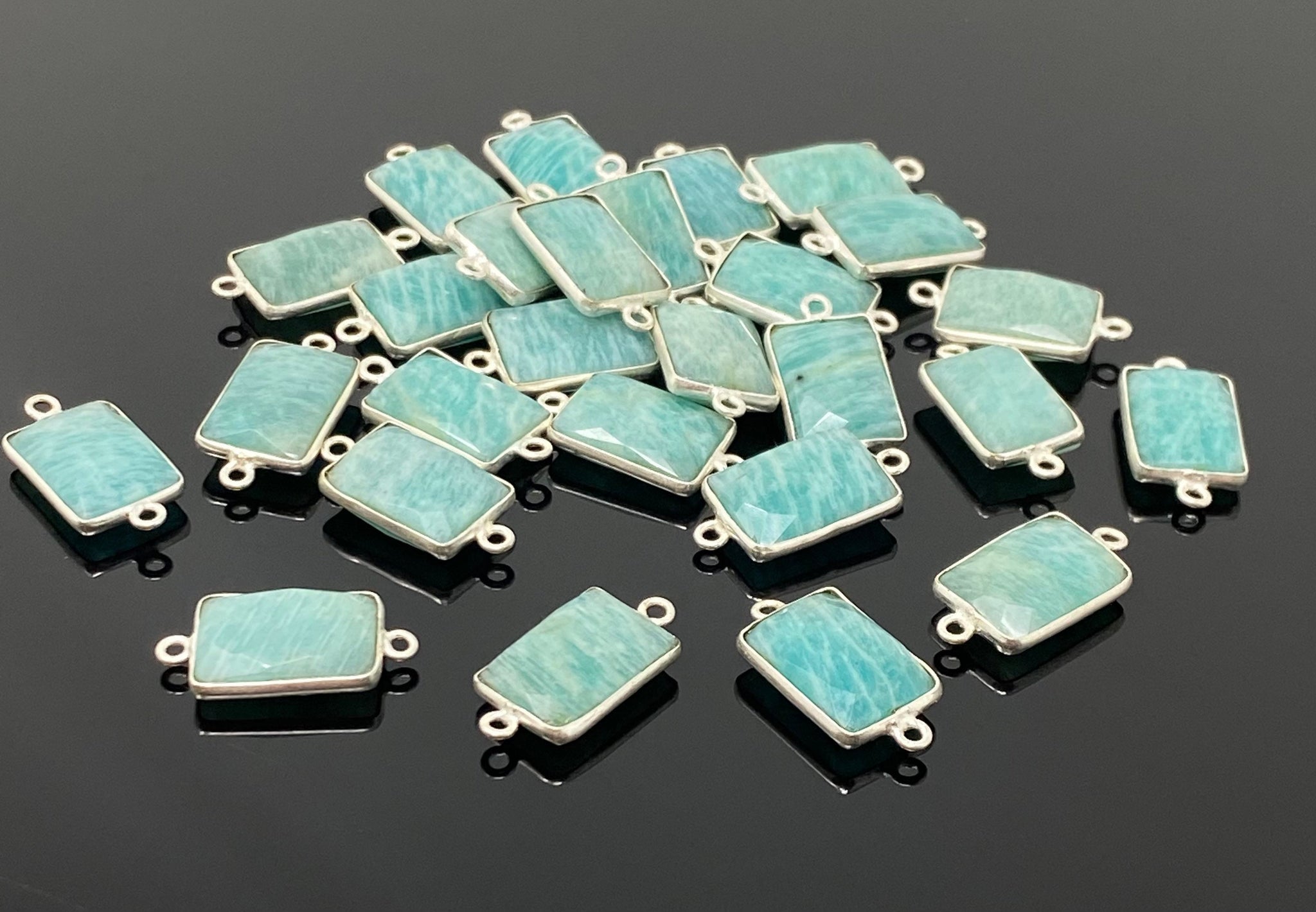 Silver Plated Natural Gemstone Amazonite Bezel Set Double Sided Briolette Connector Jewelry Findings for Jewelry Making at Wholesale Price.