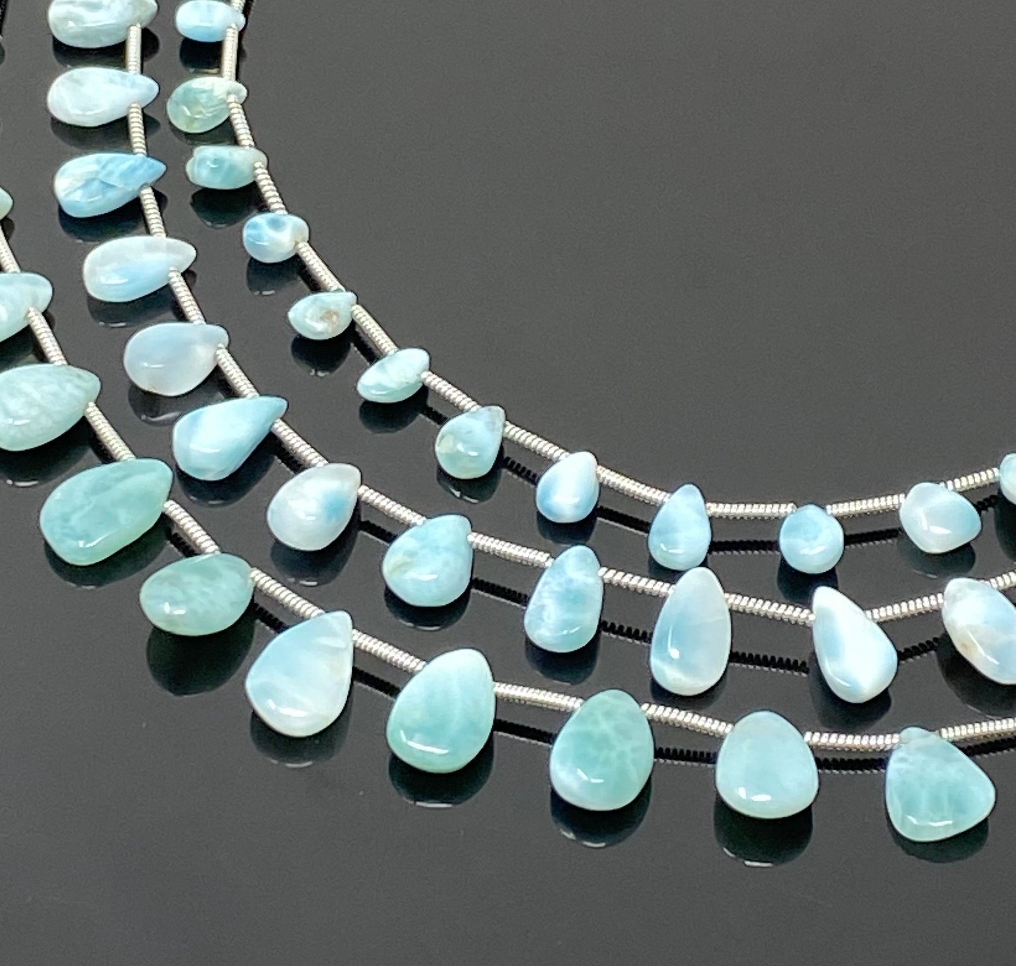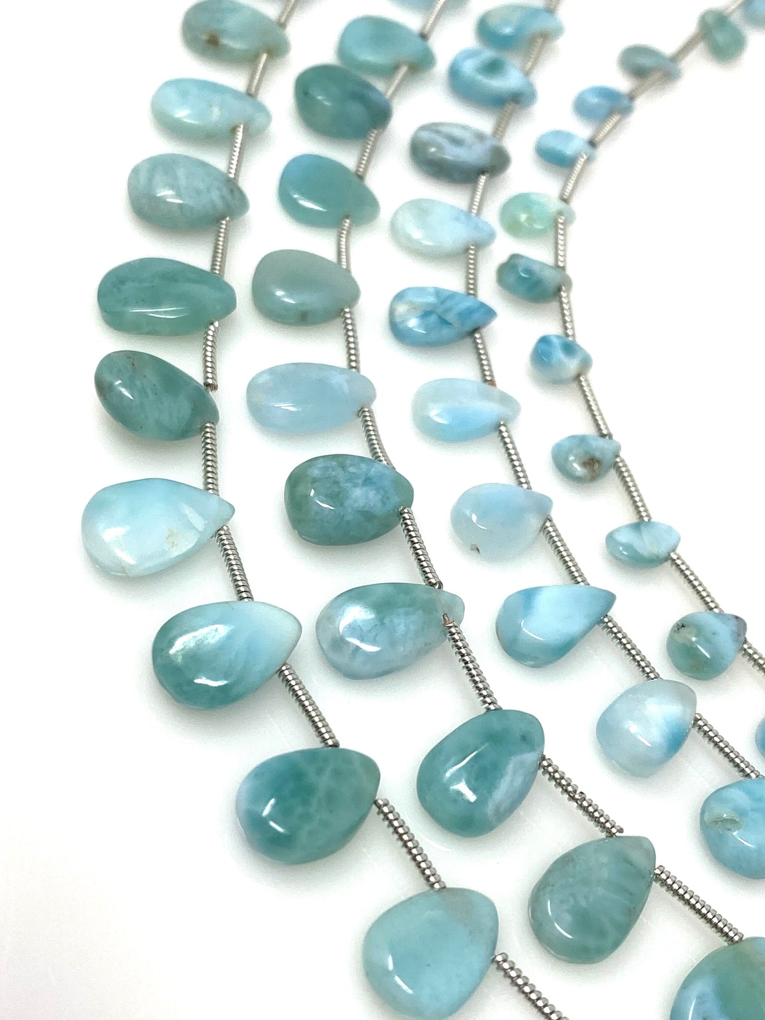 8” Natural Larimar Beads Gemstone Beads, Larimar Pear Shape Smooth Beads, Bulk Wholesale Beads for DIY Jewelry Making